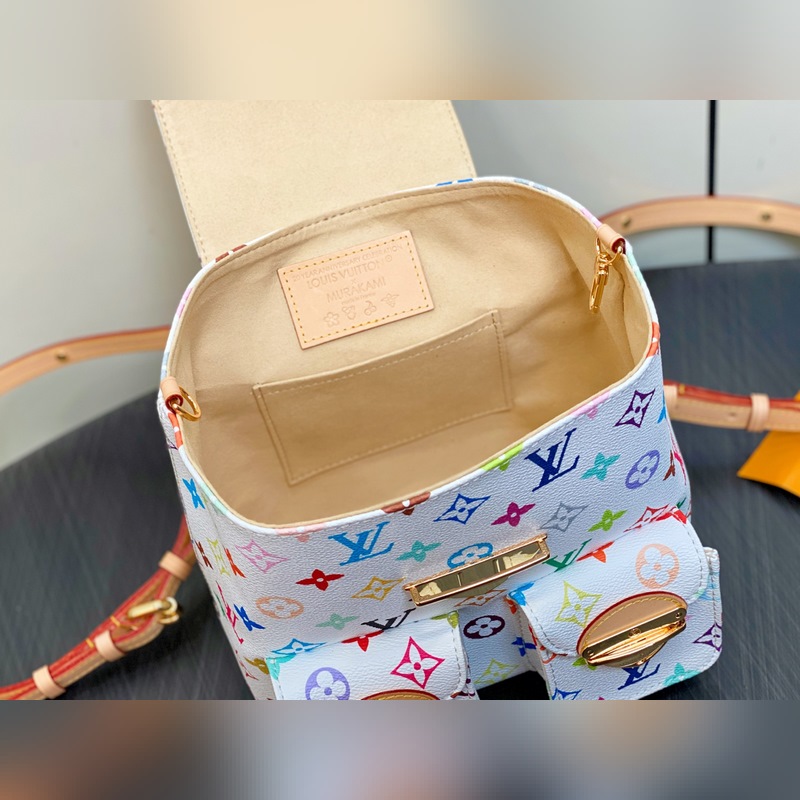 【올해 신제품】 M13081 화이트 컬러 더블 숄더백 시리즈 베니스 더블 숄더백 (트리컬러 - 무라카미 타카시) 이 베니스 더블 숄더백은 루이 비통과 무라카미 타카시의 리메이크 시리즈의 유쾌한 스타일을 생동감 있는 디테일로 표현했습니다. 모노그램 코팅 캔버스에 예술가의 붓질로 표현된 화려한 무지개 색상이 돋보이며 브랜드 로고는 리본과 걸쇠 장식으로 장식되었습니다. 조절 가능한 소가죽 손잡이와 가죽 어깨 끈을 활용해 편리함을 더했습니다. 게으름뱅이의 필수품! 가장 중요한 것은 어떤 방식으로 메어도 정말 멋집니다! 크기: 20 × 20 × 11 cm.