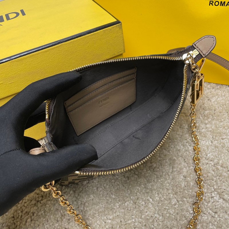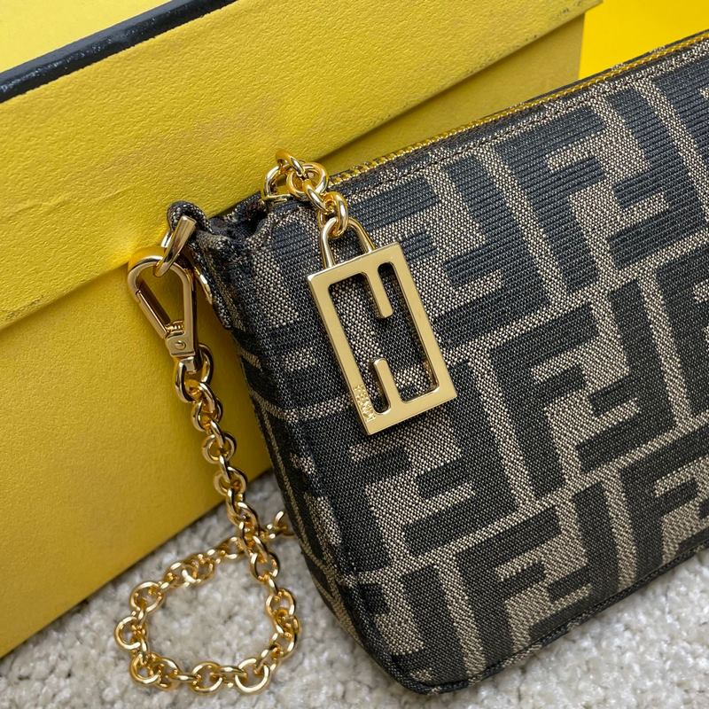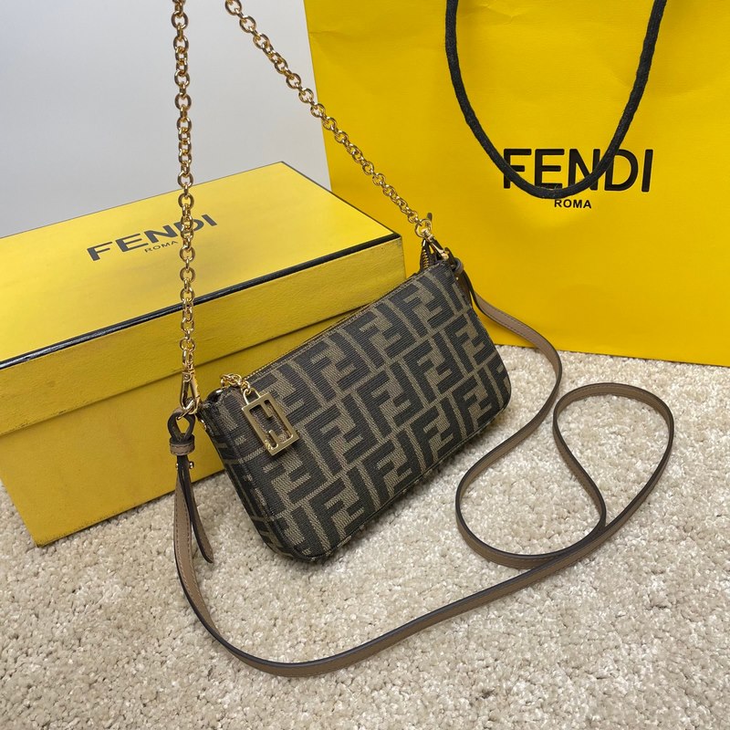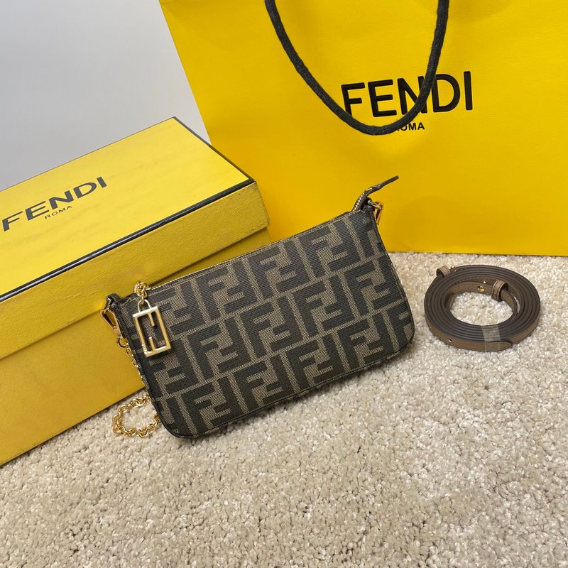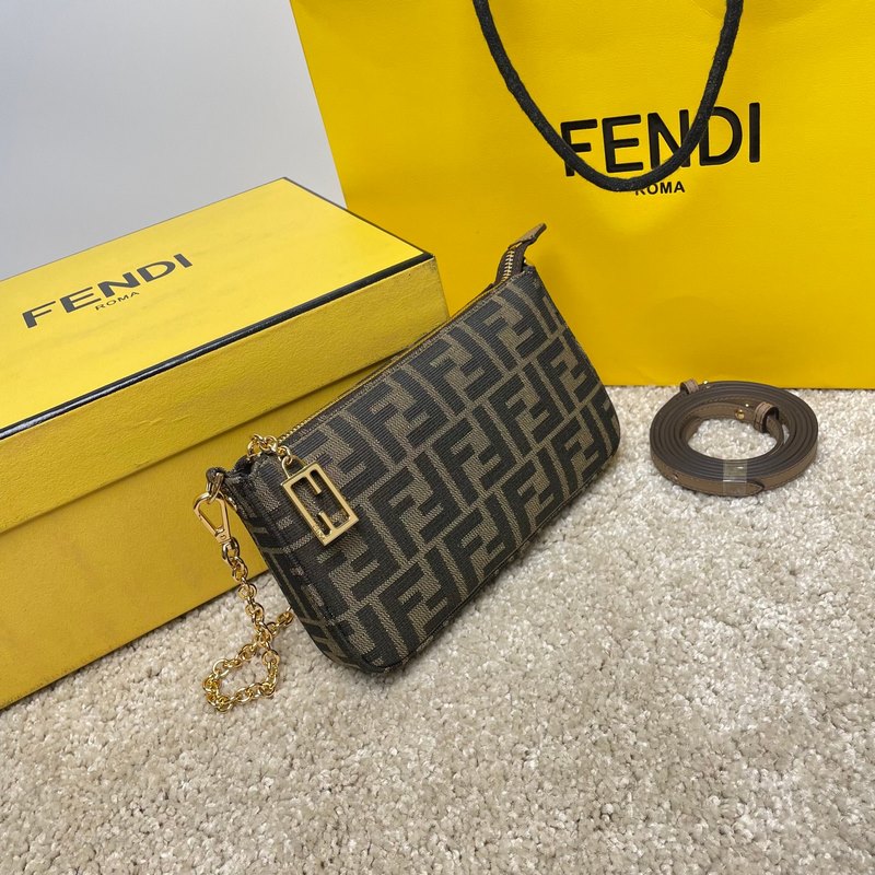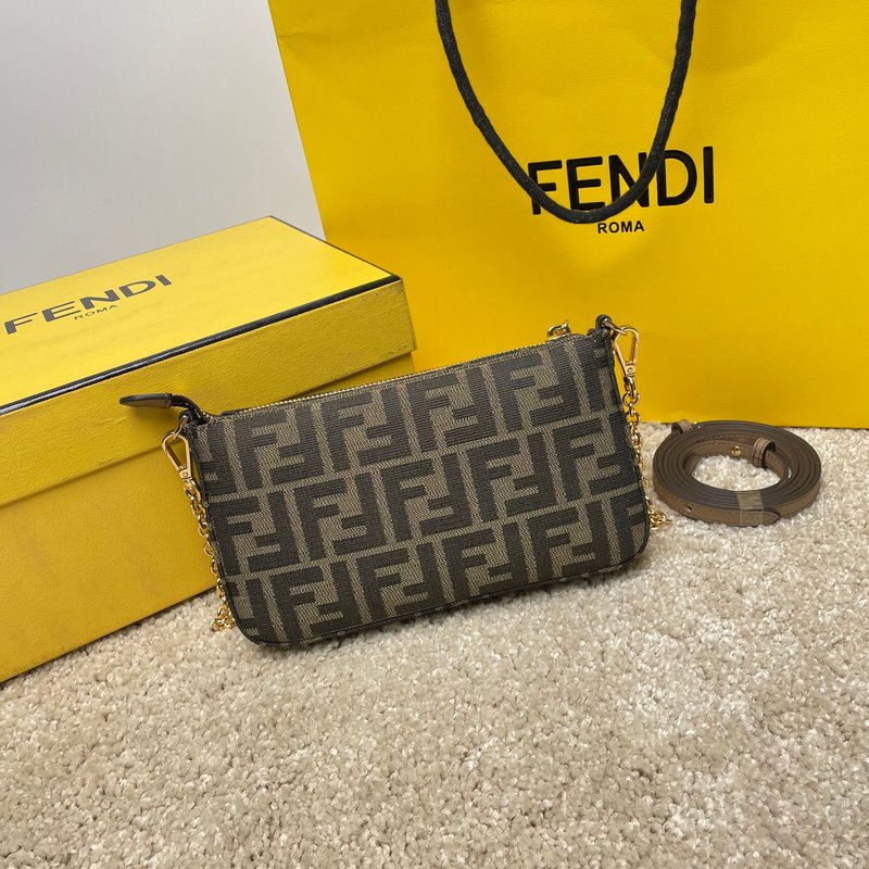 이름: 바게트 클러치 백 모델: 8889 Old Flower 품질: 최고 품질의 원본 색상: 앤틱 브라운 패브릭 크기: 20×13×3cm 탈부착이 가능한 얇은 체인이 달린 바게트 클러치 백으로 손으로 들거나 팔 아래에 매고 다닐 수 있습니다. 지퍼 여닫이 부분에는 상징적인 FF 패턴이 장식되어 있습니다. 갈색과 담배색 자카드 FF 패턴의 패브릭. 골드 마감 금속 부품.