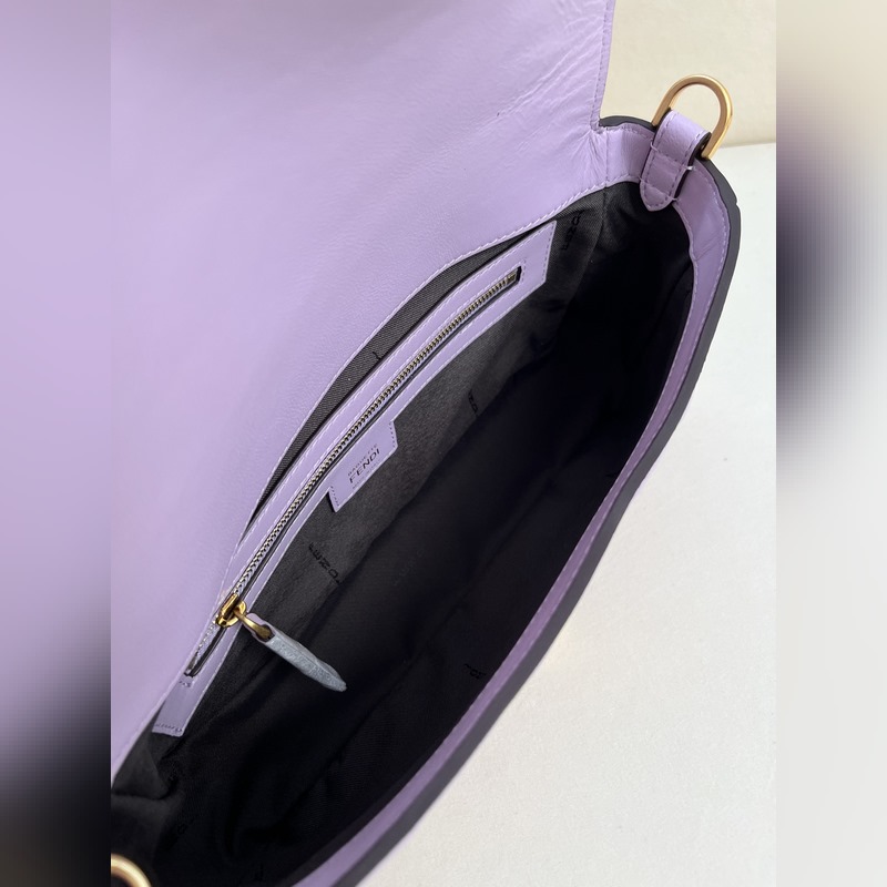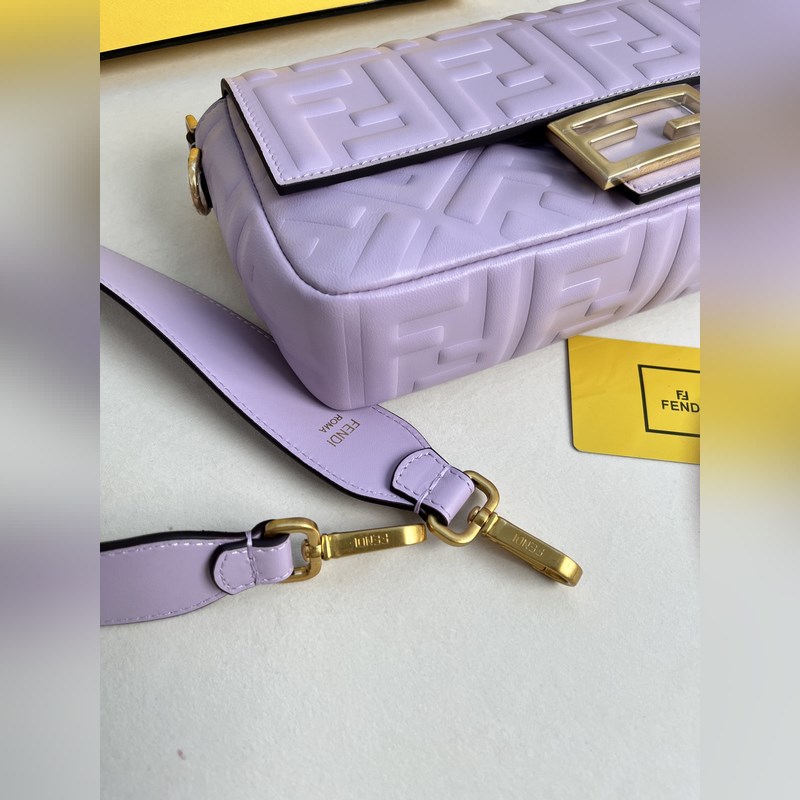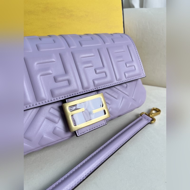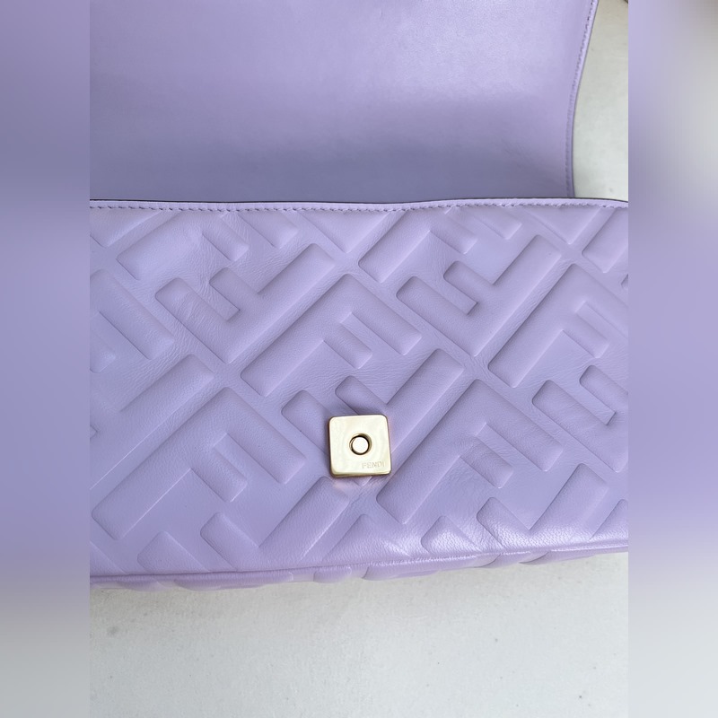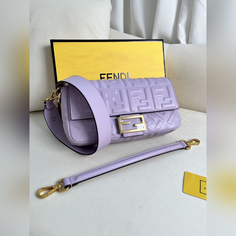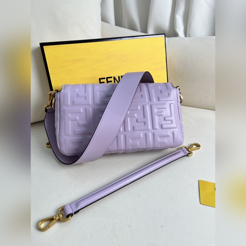 연보라색 바게트 핸드백 가죽 핸드백 더 보기 아이코닉 바게트 미디엄 핸드백은 부드러운 나파 가죽 소재에 입체적인 FF 패턴이 특징입니다. FF 클로저로 여닫을 수 있습니다. 앞쪽 플랩 자석 스냅 버튼 안감 처리된 내부 수납공간 지퍼 포켓 금색 금속 장식 등이 특징입니다. 탈착식 손잡이와 어깨끈 덕분에 가방을 손으로 들거나 어깨에 메거나 크로스바디로 메고 다닐 수 있습니다. 이탈리아에서 제작 소재: 겉감: 양가죽 안감: 면 깊이: 6 길이: 27 높이: 15 항목 번호: 211
