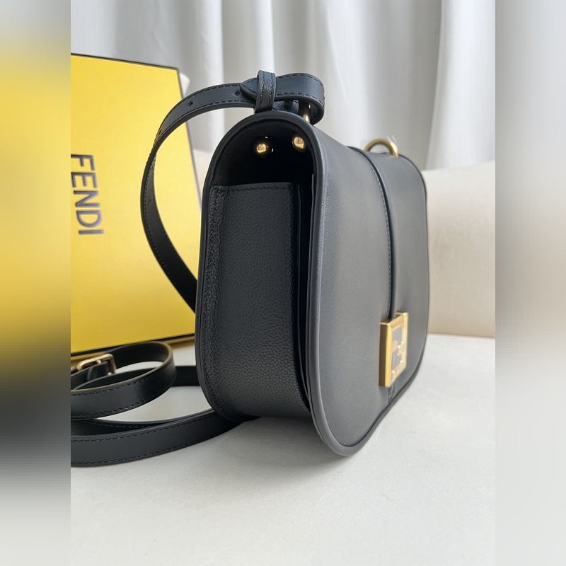 중간 검정색 가방 좀 들어주세요 블랙 색상의 부드럽고 풀그레인 가죽 핸드백 여성스러운 곡선 라인과 금속 FF 로고가 새겨진 확장형 플랩이 있는 미디엄 숄더백. 엠보싱 처리된 테두리와 디테일이 있는 블랙 색상의 부드러운 가죽으로 제작. 가방의 측면은 같은 색상의 풀그레인 가죽으로 제작. 뒷면에 플랫 포켓. 금속 FF 로고가 새겨진 자석 잠금장치. 플랫 포켓과 빈티지 골드 색상의 금속 장식이 있는 안감. 조절이 가능한 탈착식 어깨끈이 특징입니다. 어깨끈 고리는 우아한 느낌을 더해 주고 가방을 열면 스터드와 FF 로고가 드러납니다. 이탈리아에서 제작되었습니다. 소재: 100% 송아지 가죽 안감: 60% 폴리아미드 40% 폴리우레탄 깊이: 7 길이: 25 키: 20 아이템 번호: 507