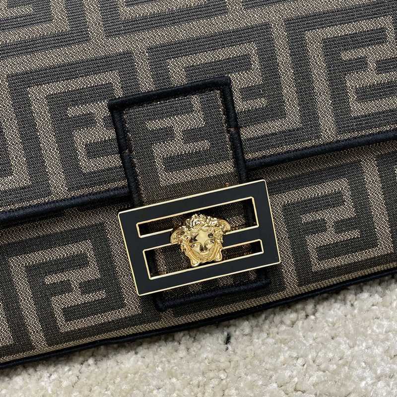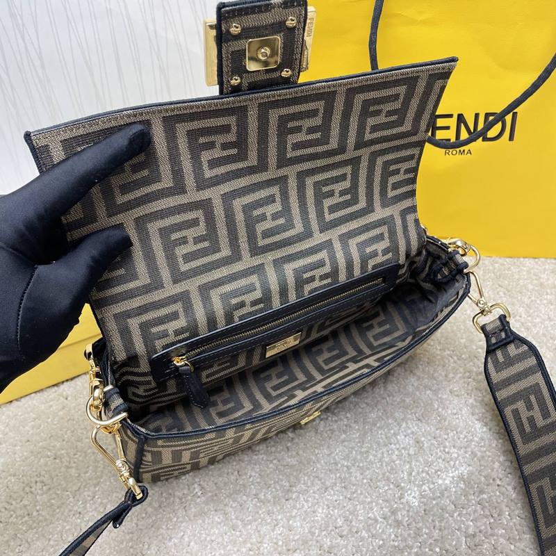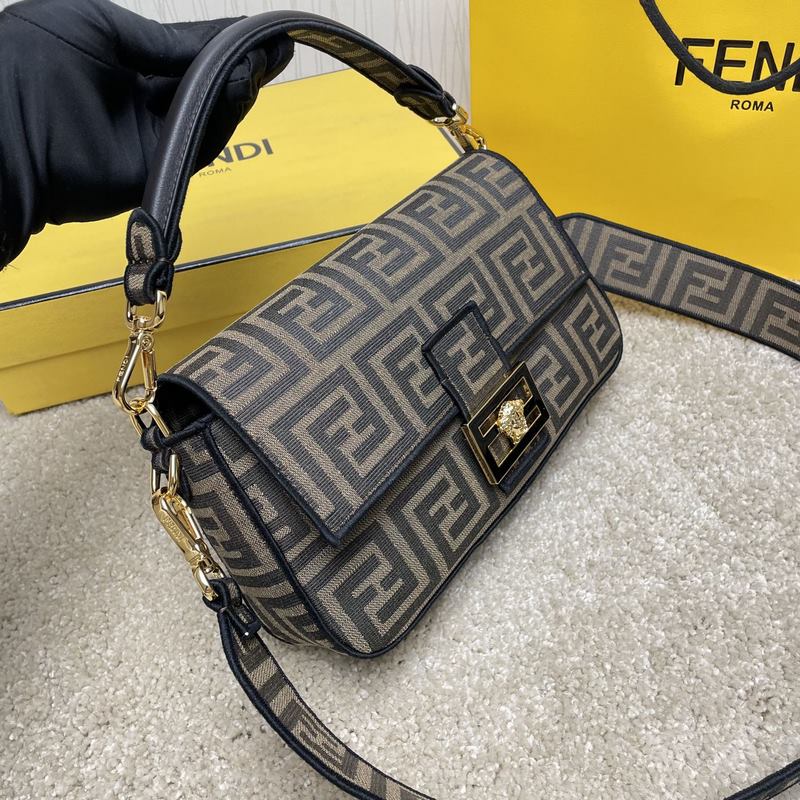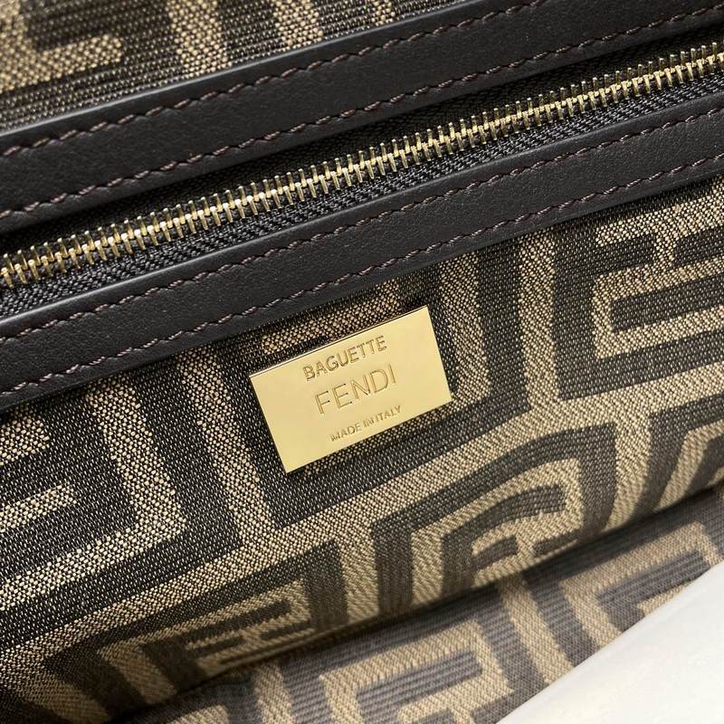 이름: 바게트 합작 투자 팬 가족 모델: 8878 large 품질: 최고 품질의 원본 색상: 갈색 가죽에 검은색 자수 크기: 26*16*4cm 상징적인 바게트 중형 핸드백은 플랩 디자인 FF Vans 패밀리 헤드 자석 단추 지퍼 포켓 탈착식 어깨끈 손으로 들거나 크로스 바디로 메는 방식 자카드 직물로 장식된 FF Vans 패밀리 소용돌이 패턴 새틴 스티치 자수 테두리 금색 금속 부품이 특징입니다. 크기: 26*16*4cm