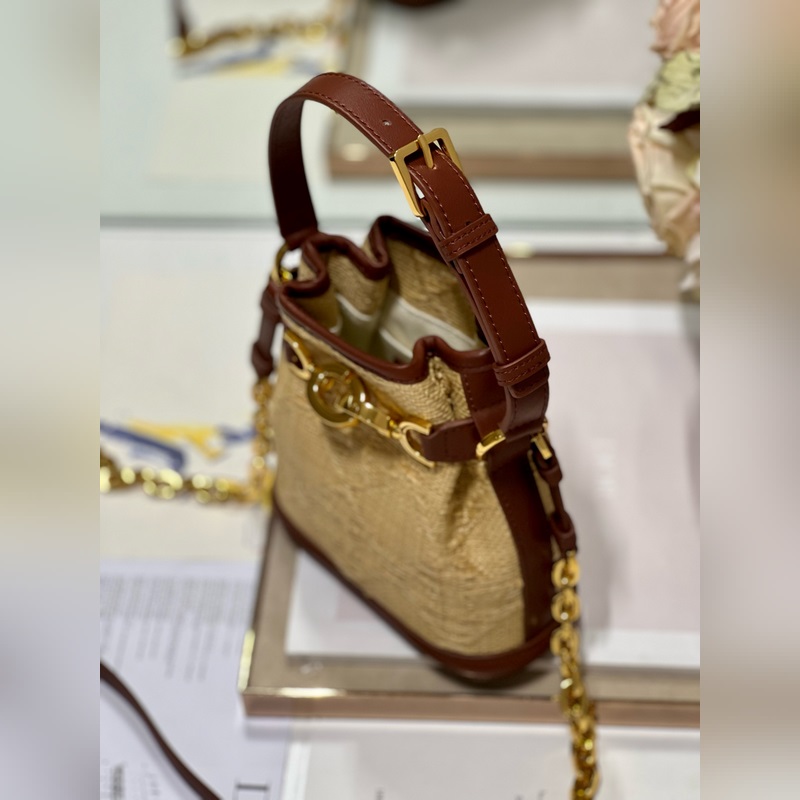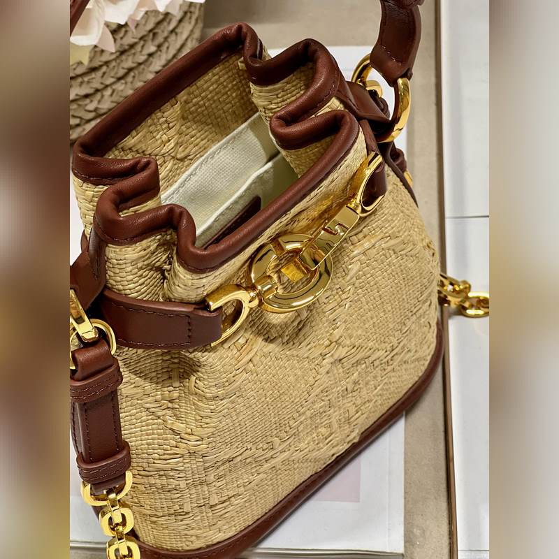 인기 상품: CEST DIOR 스몰 백 니트 Cest Dior 가방은 우아하고 클래식한 2023년 가을/겨울 신상 모델입니다. 천연 소재의 천연색 짚으로 만들어졌으며 안장색 갈색의 금색 소가죽과 아름다운 대비를 이루는 등나무 체크무늬로 장식되어 있습니다. 버킷백 모양에 CD 잠금장치와 손잡이 모양의 알파벳 D가 달려 있어 일상생활에 필요한 모든 물품을 안전하게 보관할 수 있습니다. 작은 사이즈 모델은 상단 손잡이와 가죽 스트랩으로 장식된 길이 조절이 가능한 탈착식 체인 숄더 스트랩을 이용해 손으로 들고 다닐 수 있어 편안하고 여유로운 느낌을 줍니다. CD 잠금 장치 탈착식 체인 숄더 스트랩과 길이 조절이 가능한 가죽 스트랩 상단에 탈착식 가죽 손잡이 모델: 2272 크기: 17×7×18cm