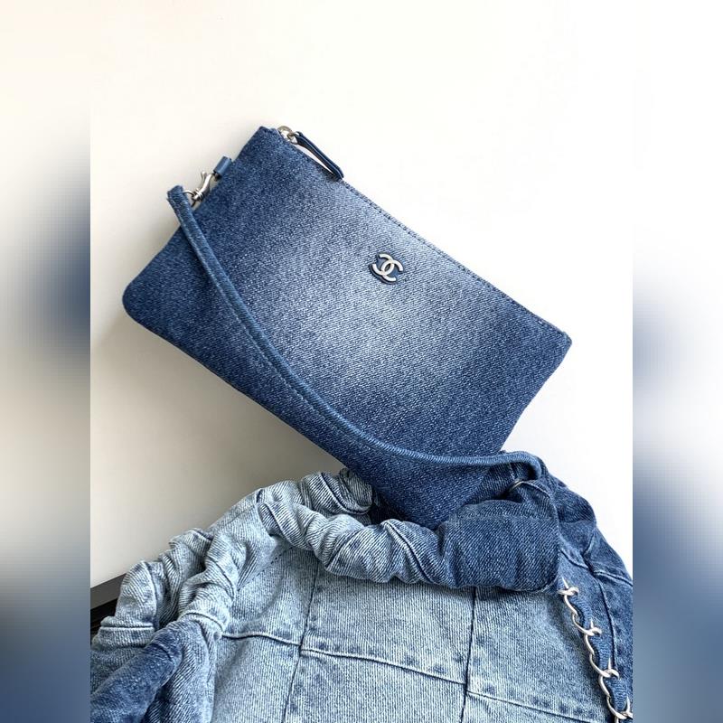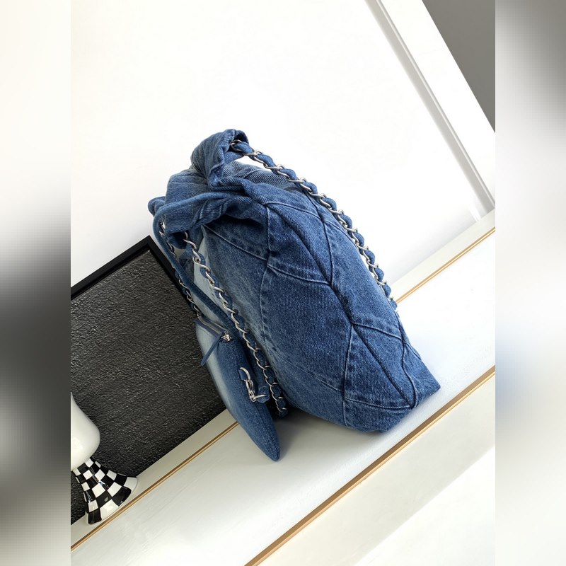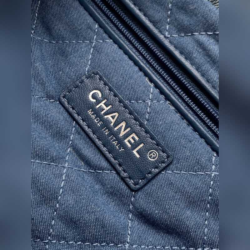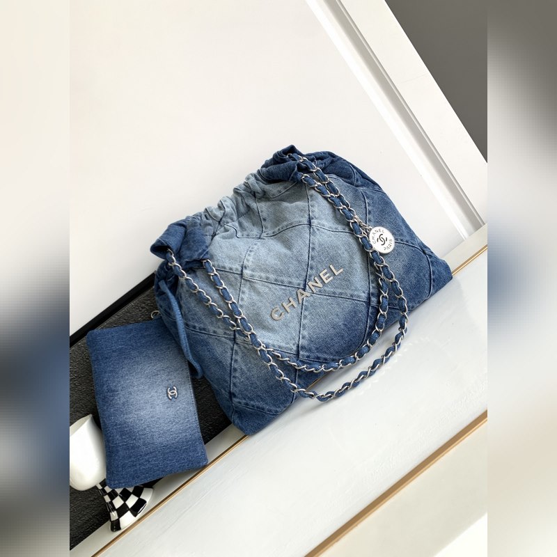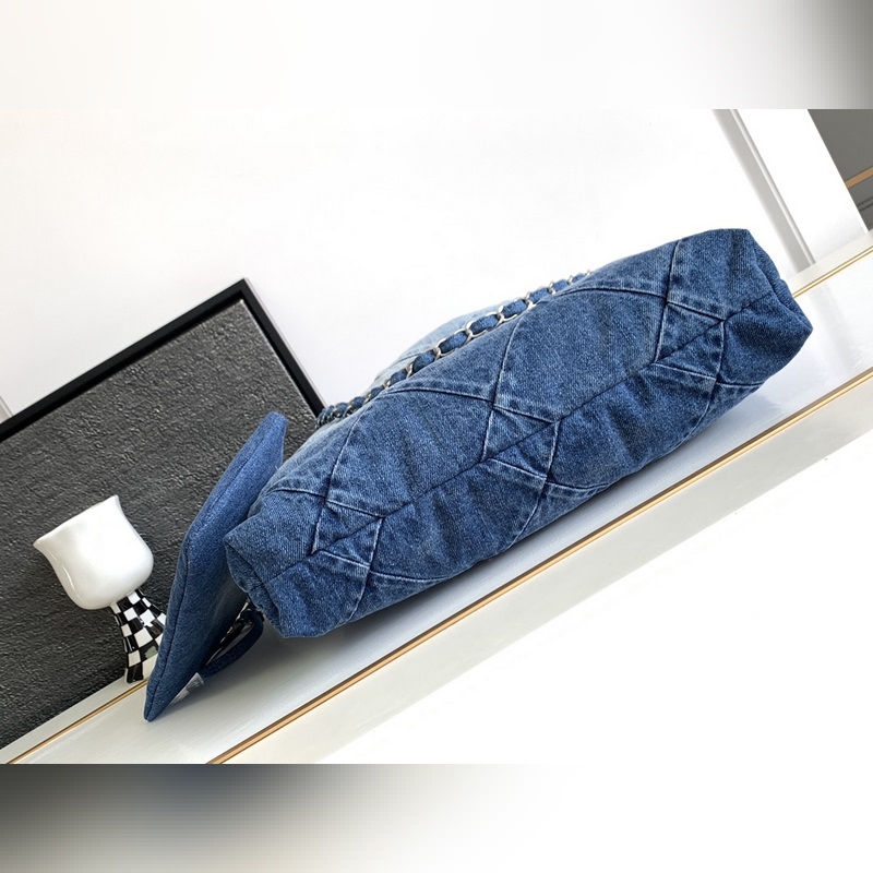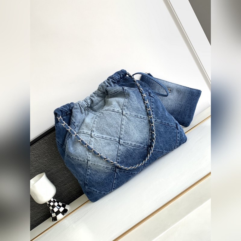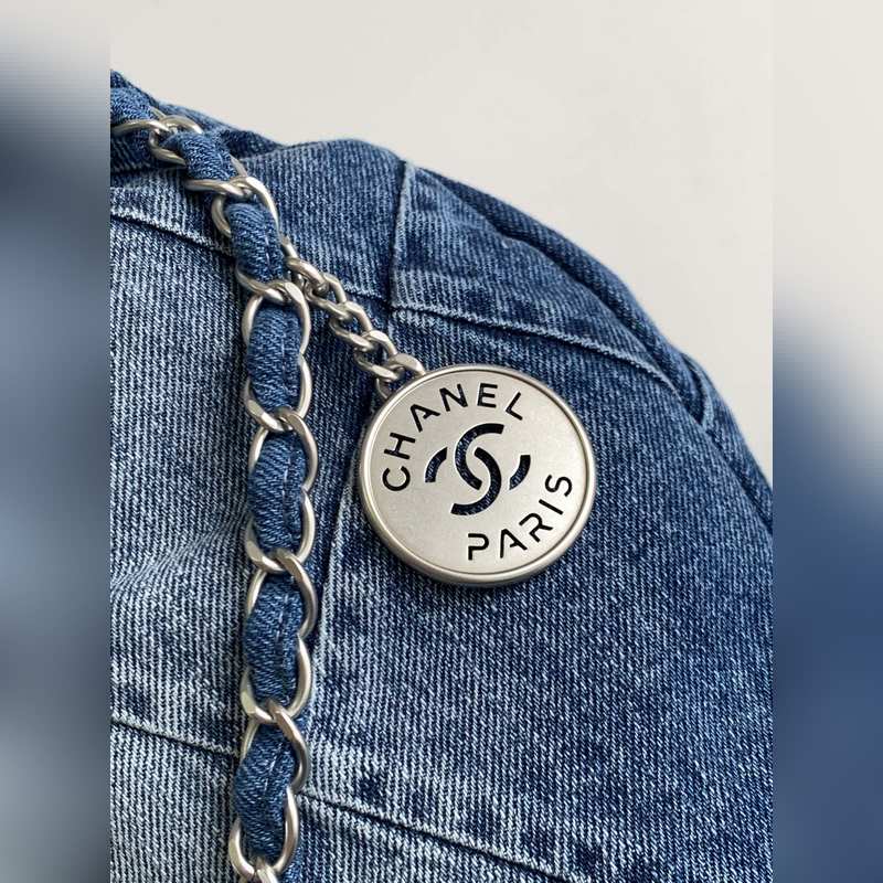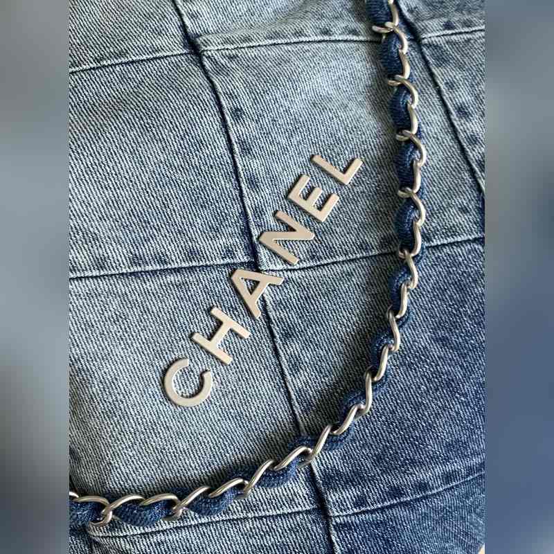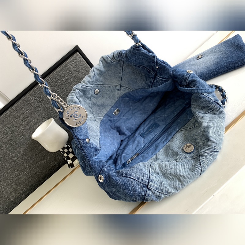 CHANEL 최신 데님 22 가방 쇼핑객 색이 변하는 데님 소재는 은색