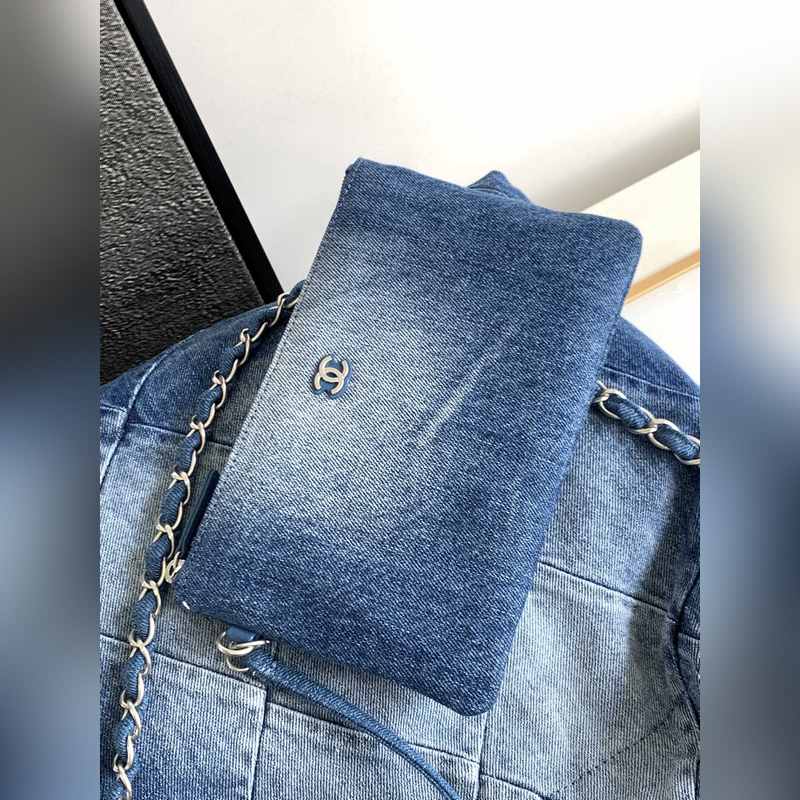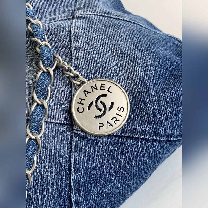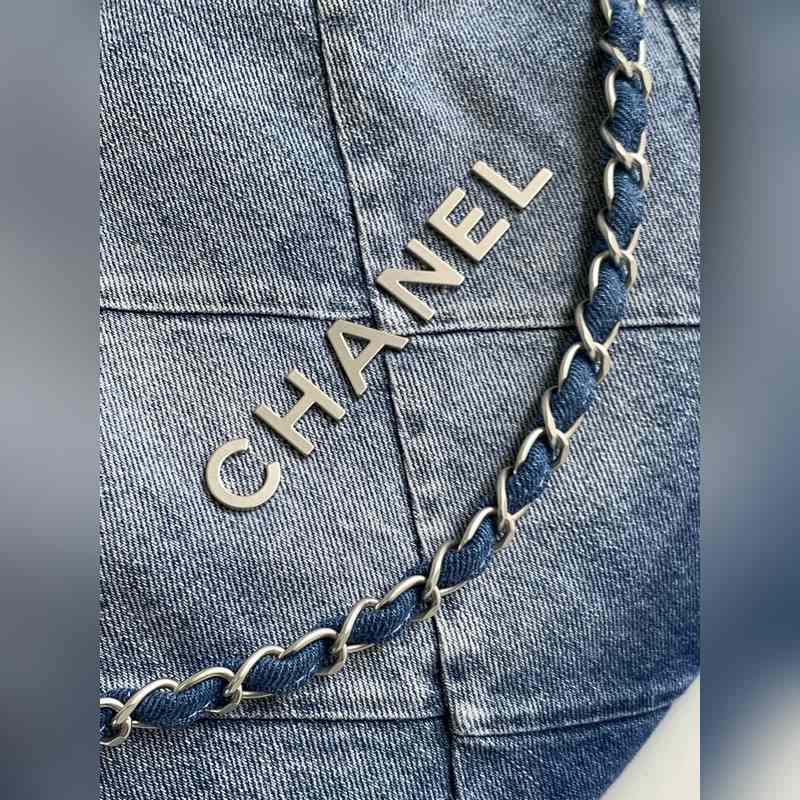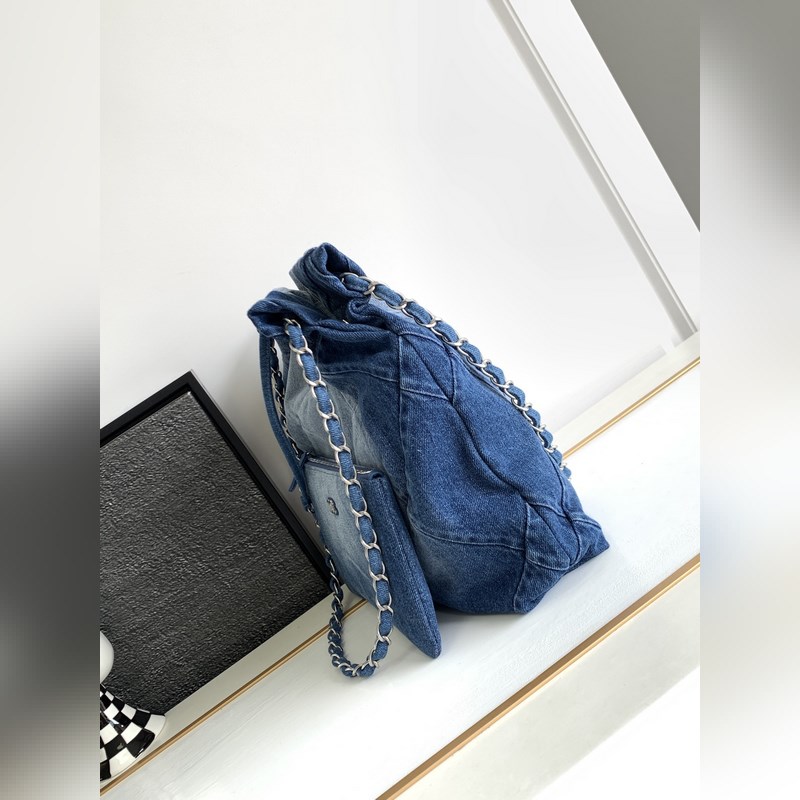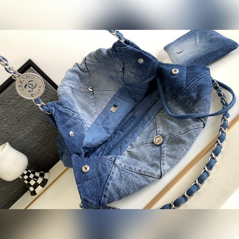 재고 있음 CHANEL 최신 데님 22 가방 쇼핑백 색이 변하는 데님 소