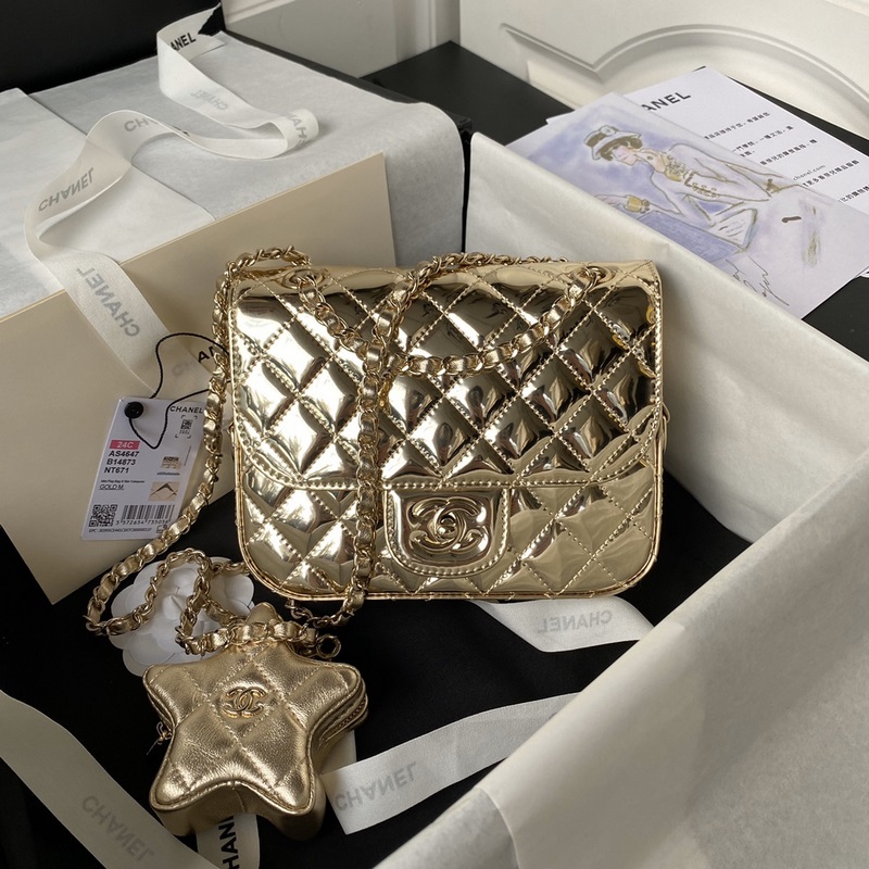 샤넬 24c 스타 컬렉션 눈부신 광채 여신 AS4647 샤넬 스타 시리즈 C를 위한 예술적인 파티 눈길을 사로잡는 폭발적인 가방 왕 세련되고 정교한 꿈의 가방 ~ 반짝이는 향기는 거부할 수 없을 정도로 매력적입니다. 세련미가 가득한 디자인 다섯개 별 모양의 매력 탈부착 가능한 디자인 기본 형태에 유연성을 더해 줍니다. 골드와 실버 컬러 조합은 세련되고 다용도로 활용할 수 있으며 실제 제품은 더욱 놀랍고 가슴을 설레게 합니다~ 크기: 15×20×6.5cm