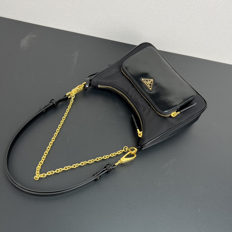 새로운 언더암 백 1BC198 나일론과 광택 있는 가죽 이 심플한 핸드백은 나일론 원단/광택 있는 소가죽으로 만들어져 현대적이고 다양한 매력을 발산합니다. 곡선형 가방 디자인 탈부착 가능한 체인 길이 조절이 가능한 반짝이는 가죽 어깨끈으로 쉽게 스타일을 바꿀 수 있습니다. 금속 장식은 화려함을 더해 주며 전체적인 효과는 매우 멋지고 트렌디합니다. 또 하나의 시대를 초월한 베스트셀러입니다. 서둘러 구입하세요 여러분! 크기: 22 x 19.5 x 6cm