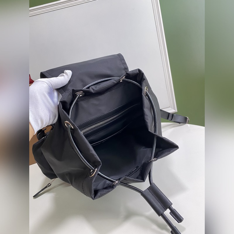 버버리 군용 배낭 새로운 소재인 ECONYL로 제작되었으며 로고 장식과 대비되는 가죽으로 마감했습니다. 크기: 22 x 14 x 33cm 아이템 번호: YK96181030