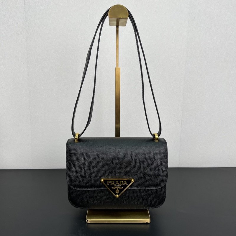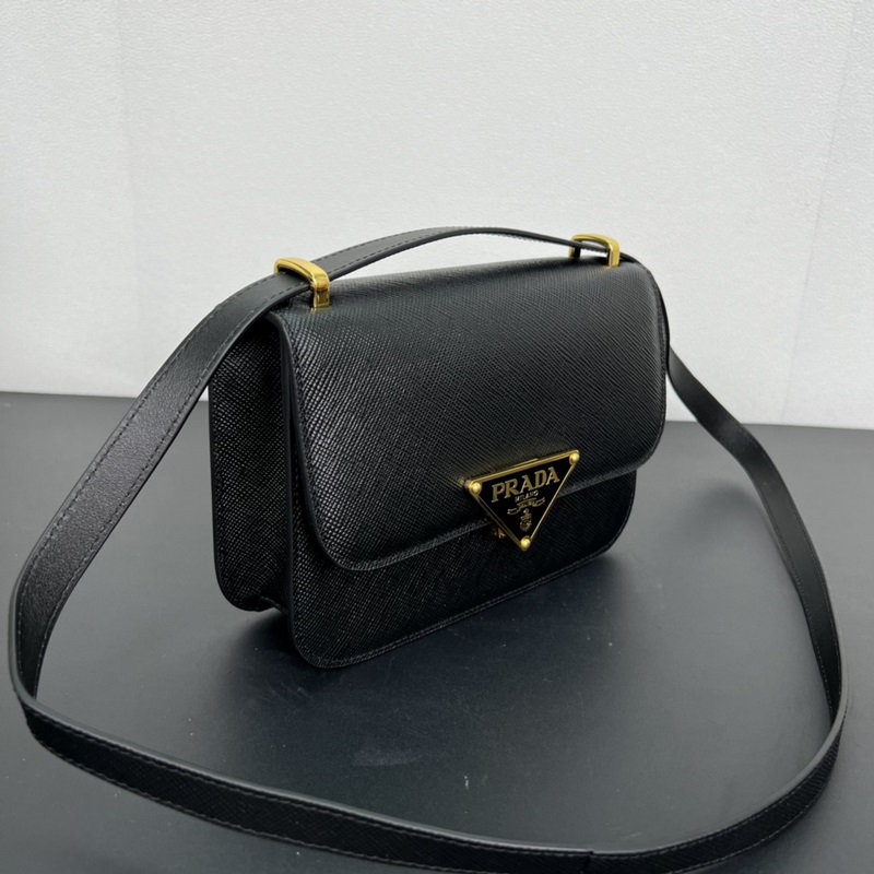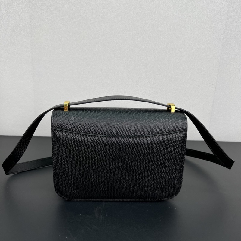 새로운 크로스바디 백 1BD320이 출시되었습니다! 이 플랩 숄더백은 사피아노 가죽으로 만들어졌으며 양가죽 안감이 있습니다. 섬세한 디자인과 부드러운 디자인을 한눈에 보여줍니다. 플랩 클로저는 끝 부분에 에나멜 페인트로 칠한 금속 삼각형 로고로 장식되어 있으며 탈착식 긴 어깨 스트랩/핸드백이 함께 제공됩니다. 절묘하게 매력적이고 심플하고 분위기 있는 제품입니다. 서둘러 구입하세요! 크기: 길이 21.5cm x 높이 14cm x 바닥 4cm