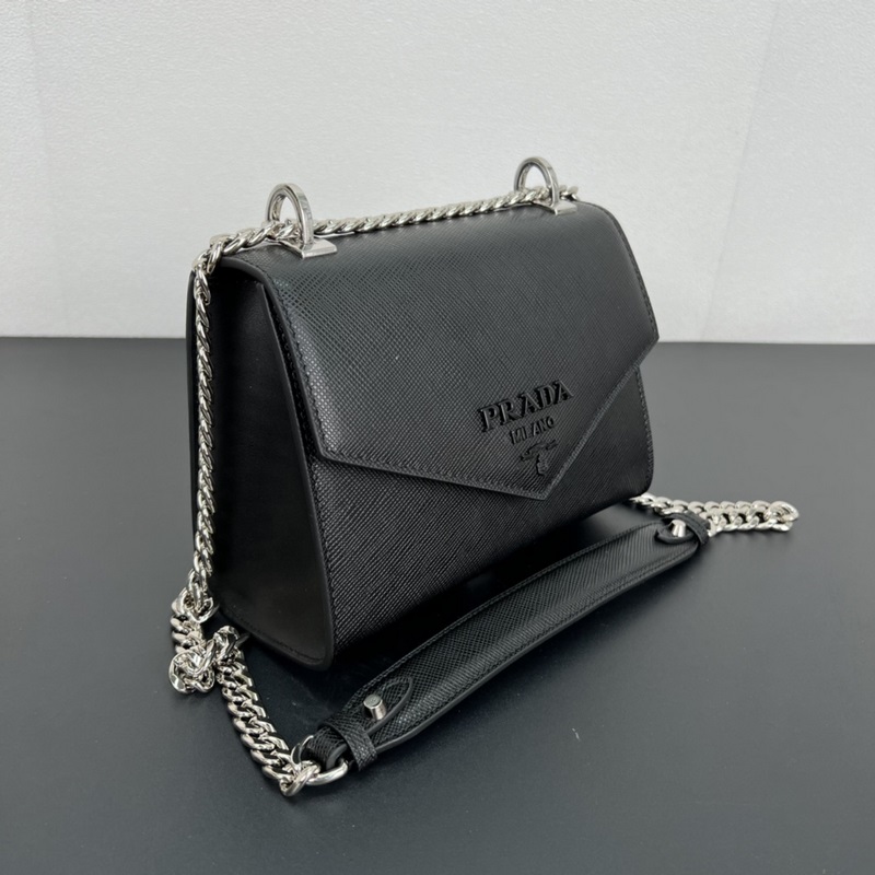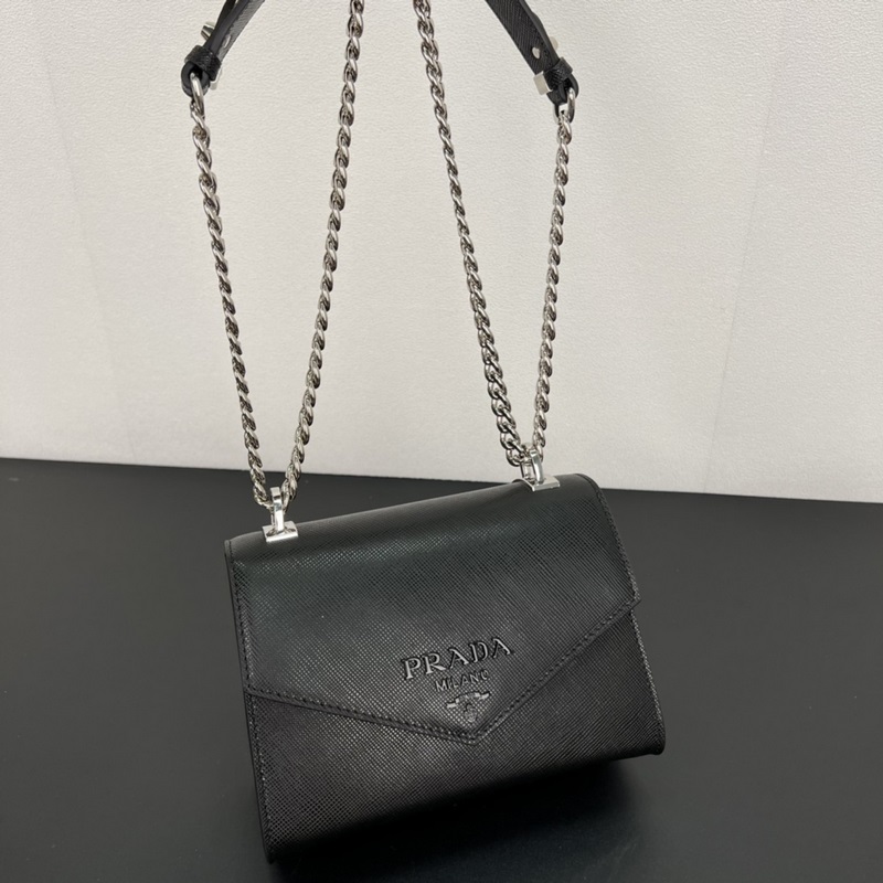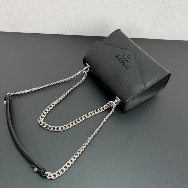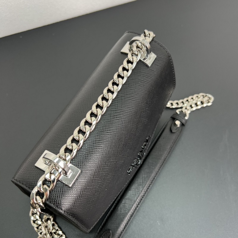 여름의 폭발적인 클래식 여성용 가방 1BD127 사피아노 가죽 거친 입자의 소가죽 길이 조절이 가능한 체인 숄더 스트랩 같은 색상의 금속 로고 자석식 상단 버튼 잠금 홈 로고 안감 165 OEM 코드 내부 포켓 2개 심플한 고급스러움과 우아함. 크기: 21×14×10cm!