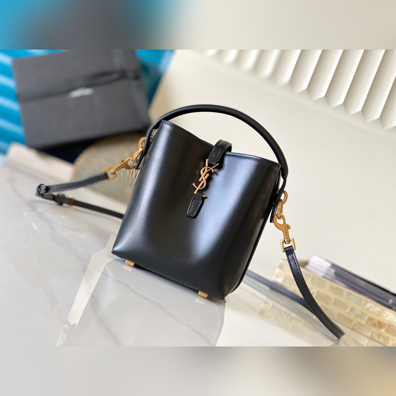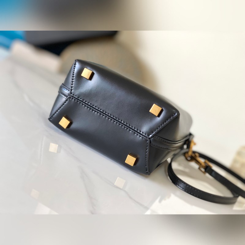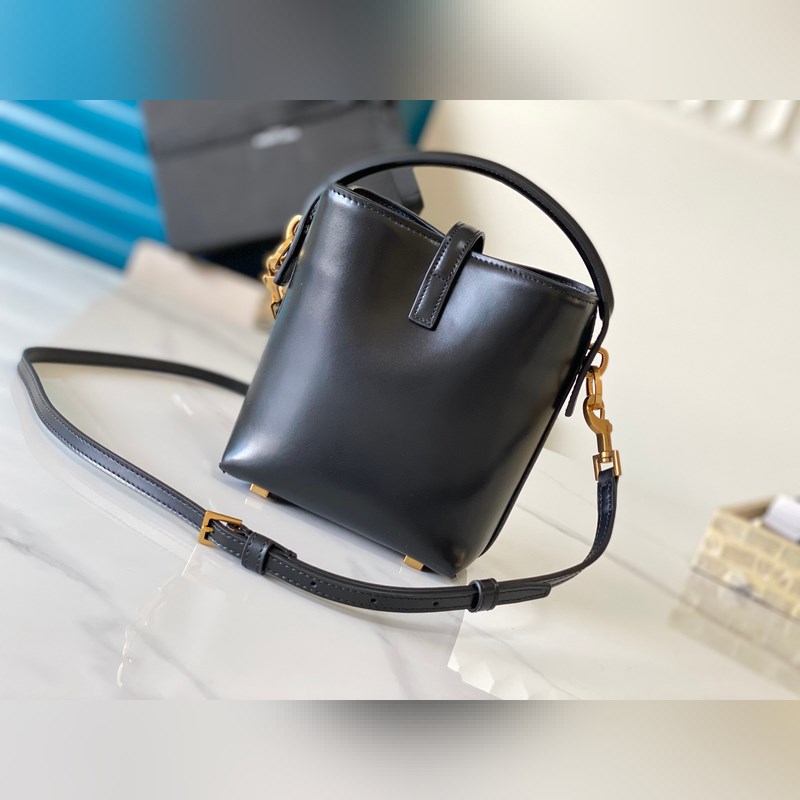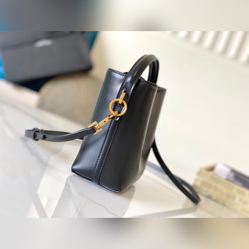 LE 37_버킷 백 미니 버킷 백이 패션계에 등장했습니다! 광택이 있는 소가죽 소재의 몸체는 단순하면서도 입체적인 실루엣을 가지고 있어 단단해 보이지만 거칠지 않습니다. 브랜드의 상징적인 로고와 새롭게 디자인된 스냅 버튼이 결합된 전체적인 외관은 클래식하고 우아하면서도 세련되고 현대적인 독특한 분위기를 자아냅니다. 모델 번호: 765870 (검은색에 금색 버클) 크기: 15x13x6cm