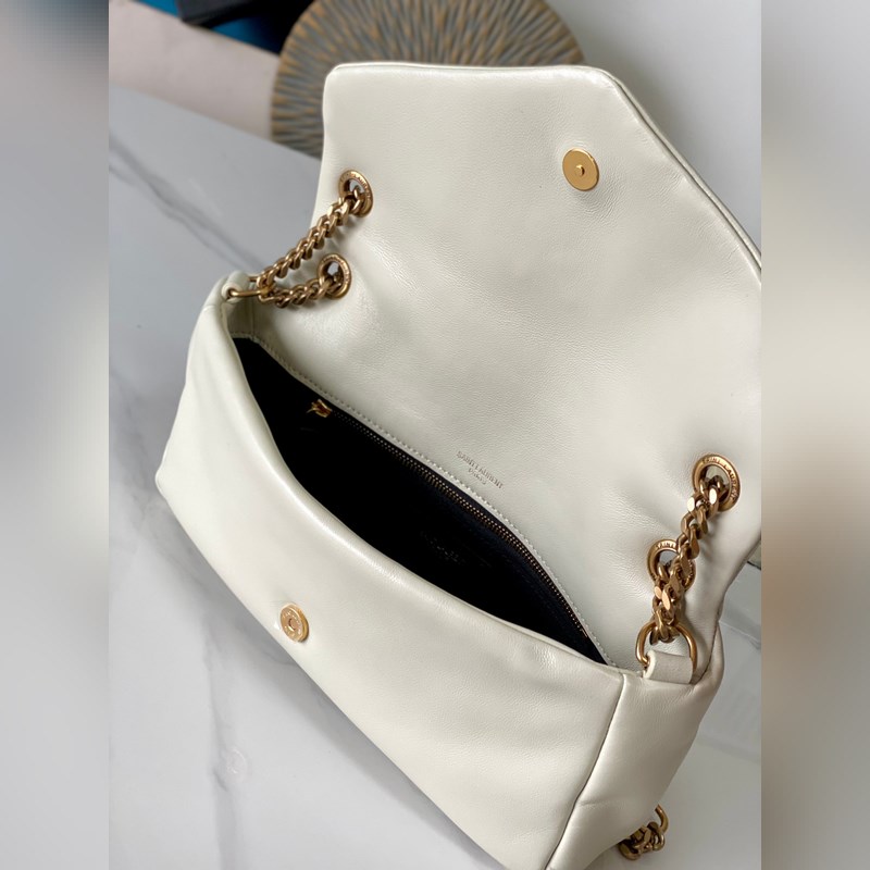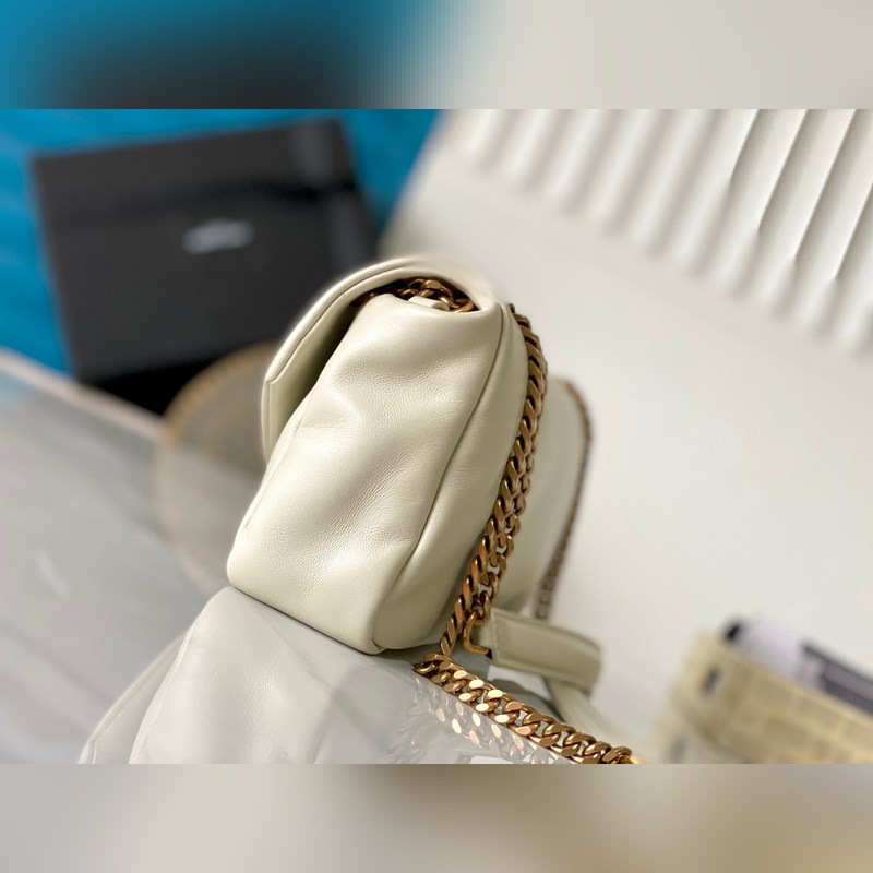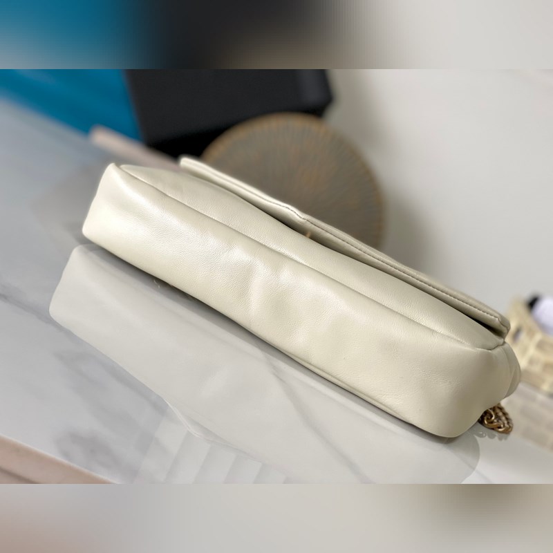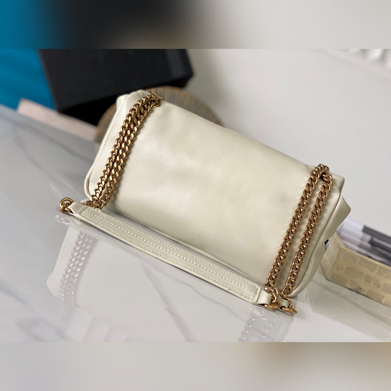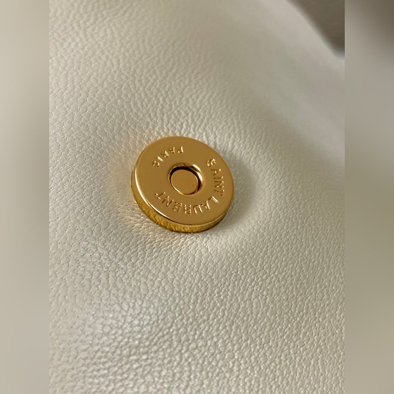 CALYSO_램스킨 체인백 이탈리아산 램스킨으로 제작되어 촉감이 부드럽고 섬세합니다. 클래식한 Y-Home 로고 체인 단추 장식 하드웨어는 모두 무광 바로크 하드웨어를 사용합니다. 가방의 입구는 접어서 자석 스냅 버튼으로 밀봉되어 있어 밀폐성이 뛰어나고 안전합니다. 가방 안에는 휴대폰과 귀중품을 보관할 수 있는 지퍼식 내부 포켓이 있지만 그 외에는 내부 포켓이 없으므로 원하는 대로 사용할 수 있습니다! 모델: 734153 (흰색 양가죽에 금색 단추) 크기: 26×14×7cm