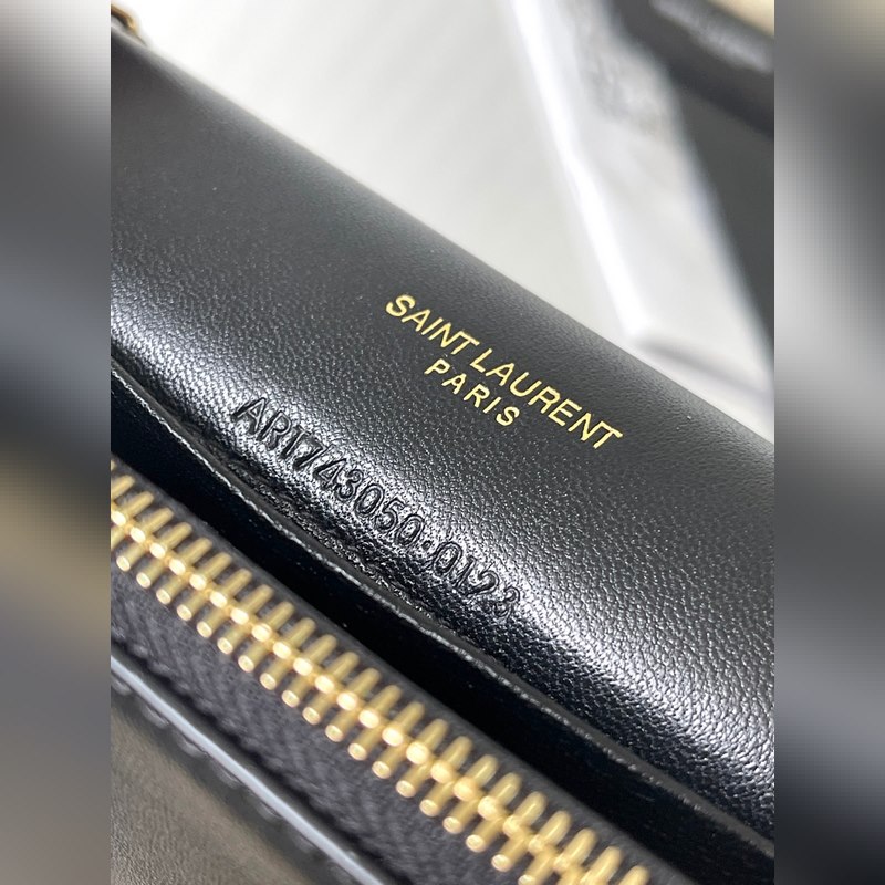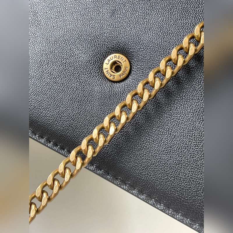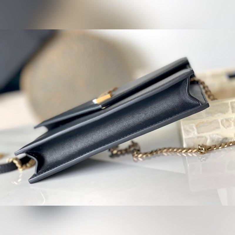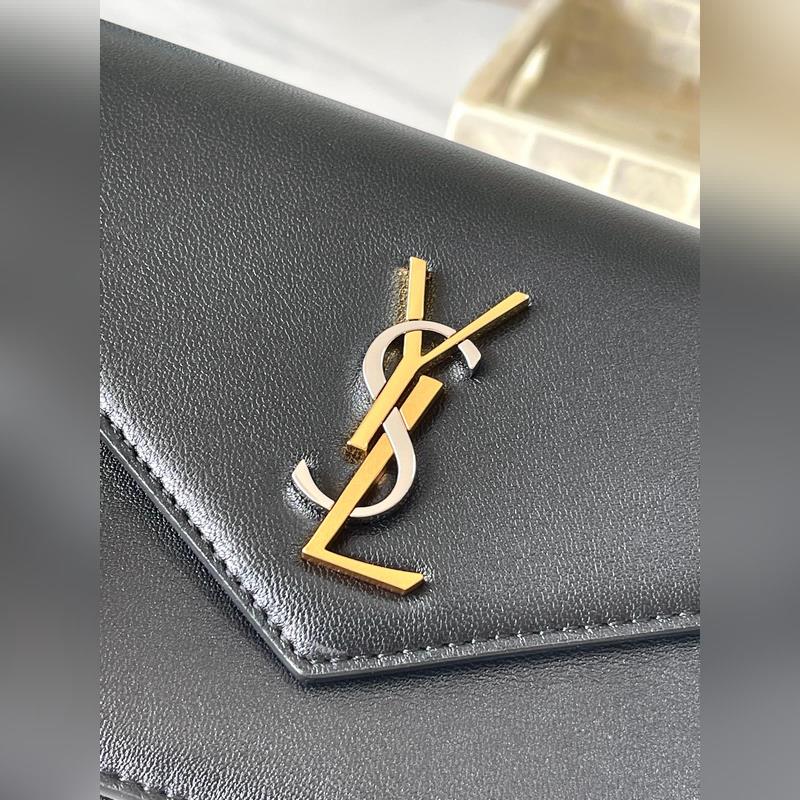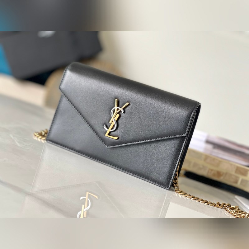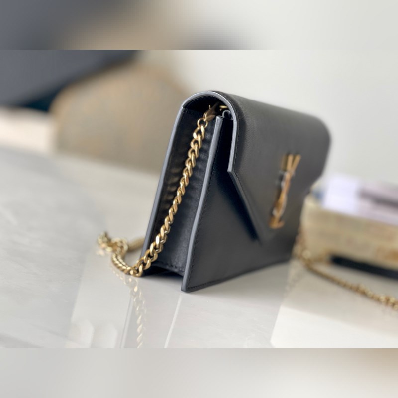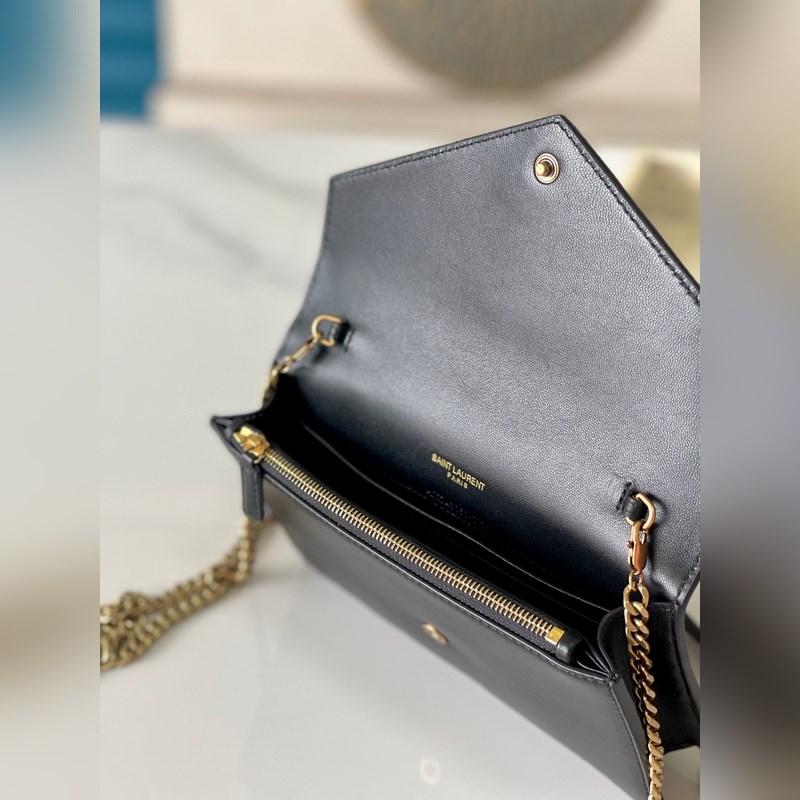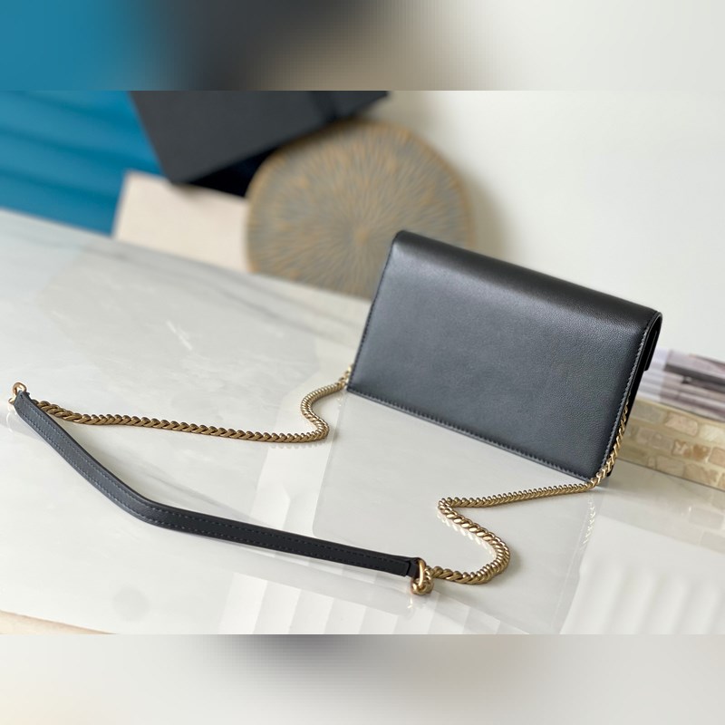 LECASSANDRE 봉투 체인 지갑 수입 양가죽 플랩 지갑 어깨에 메거나 손에 들 수 있으며 클래식한 로고 3색 금속 장식 작은 크기지만 대용량 카드 슬롯 6개 지폐 슬롯 메인 수납공간 지퍼식 동전 주머니 매우 실용적인 작은 가방 여름 별 또 다른 클래식 모델의 탄생 모델: 743050 검은색 양가죽 골드 체인 크기: 19*12.5*3.5