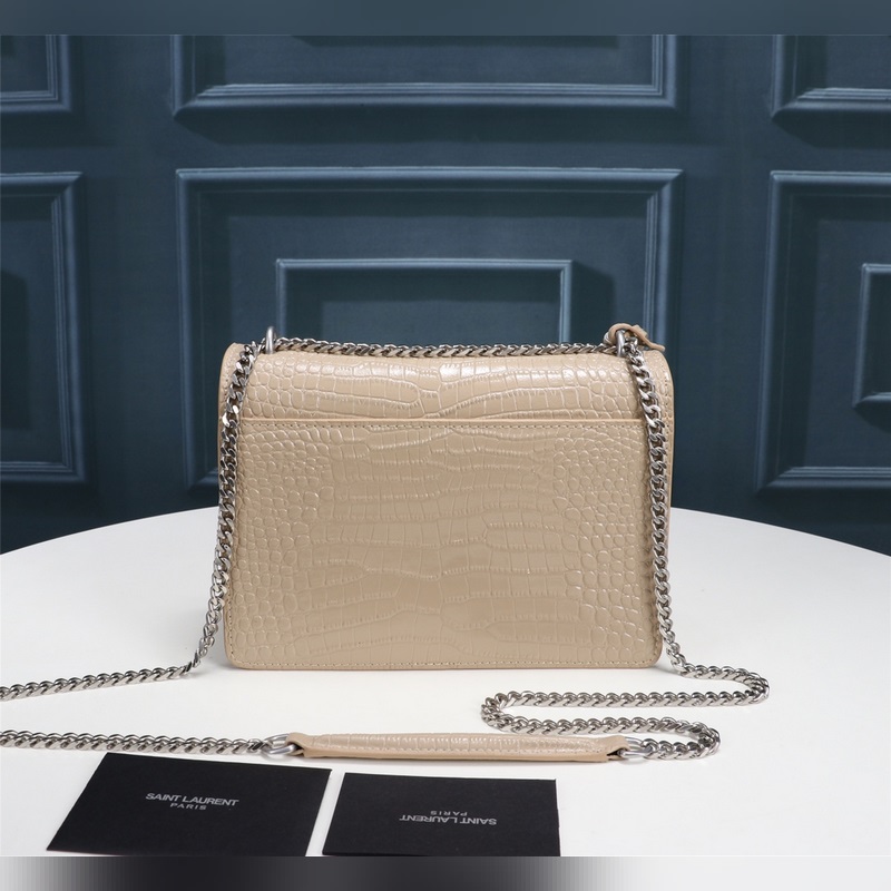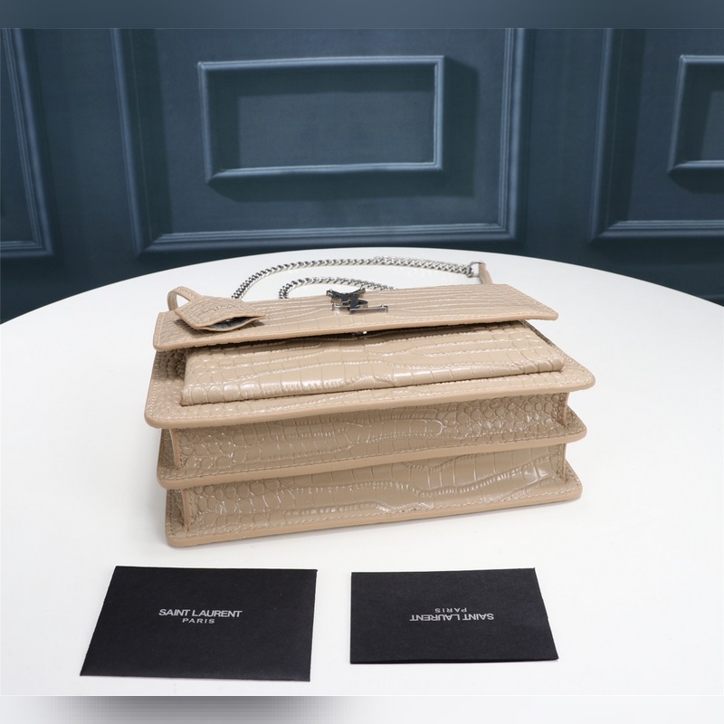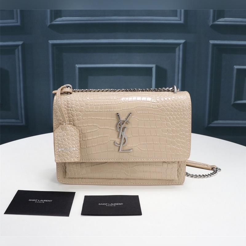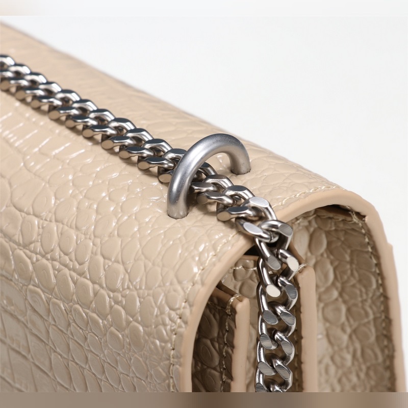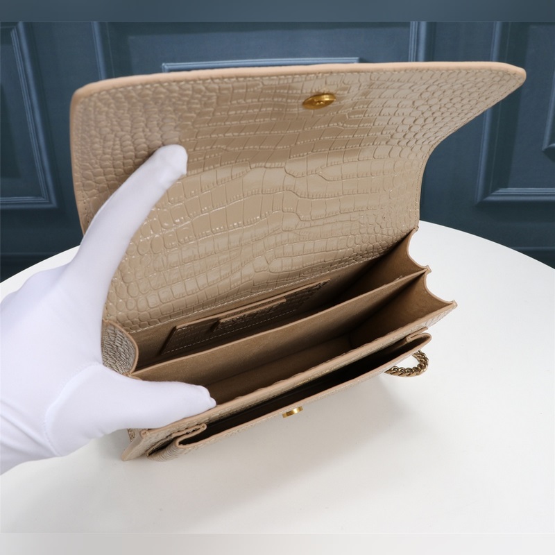 악어 무늬 YSL Saint Laurent의 폭발적인 악어 무늬 모델. Prince Wen과 같은 스타일 [기쁘다] SAINT LAURENT 프론트 플랩 핸드백 측면에 아코디언 플리츠 대각선으로 메거나 어깨에 걸칠 수 있는 가죽 숄더 스트랩 금속에 YSL 로고가 부착된 키링. 크기: 22.16.8 모델 442906