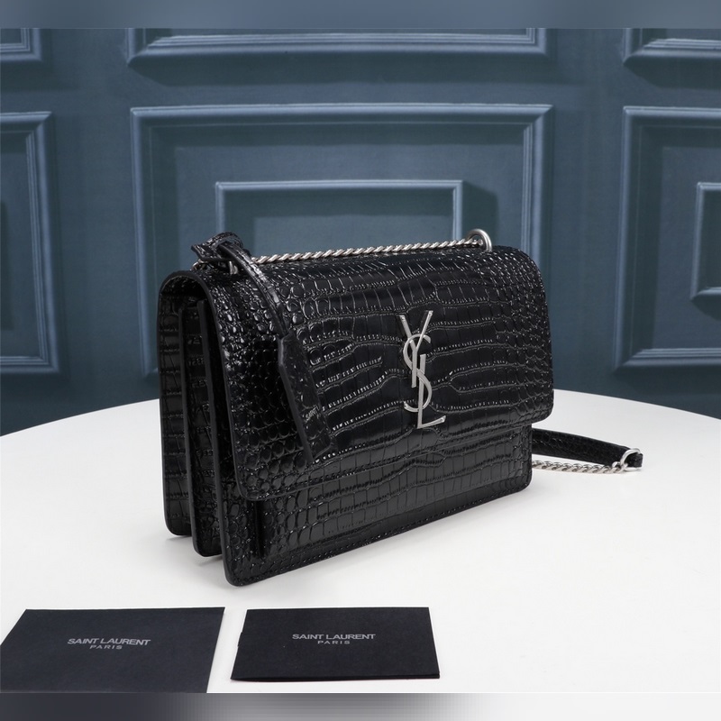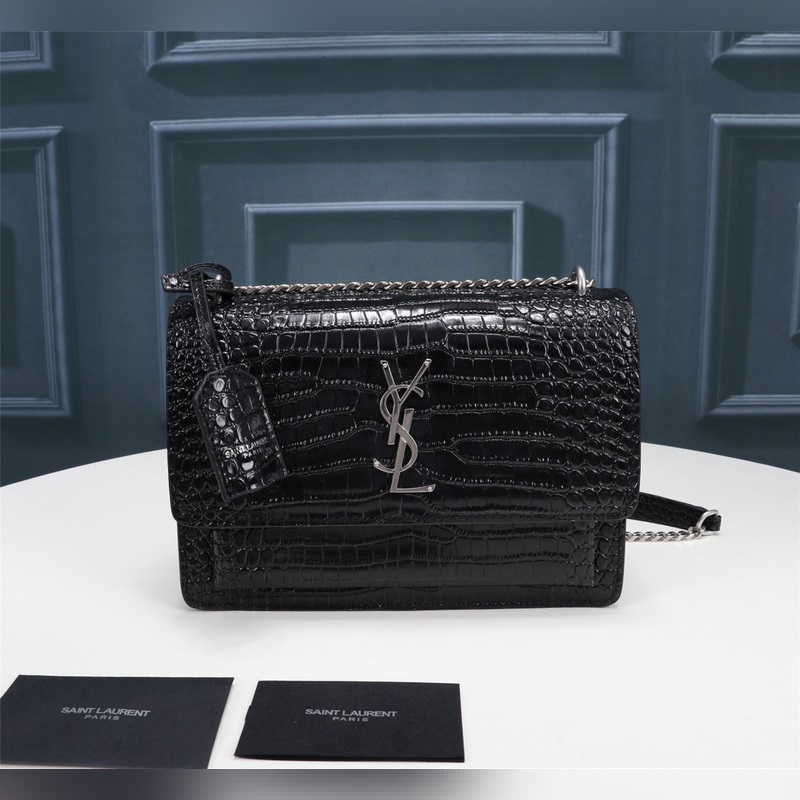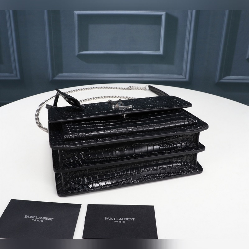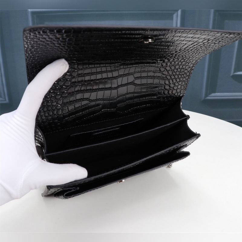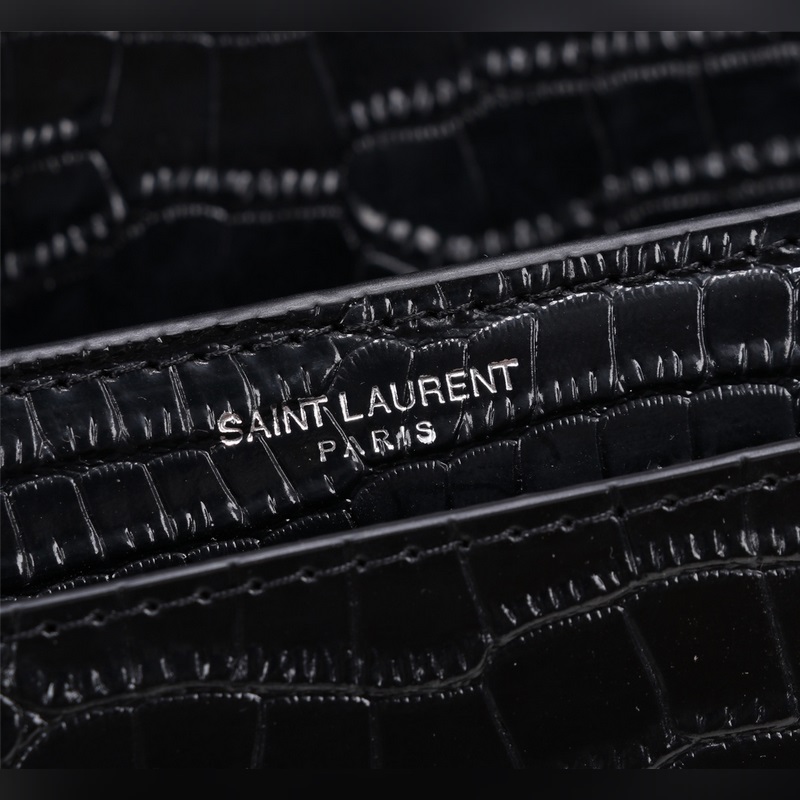 악어 무늬 YSL Saint Laurent의 폭발적인 악어 무늬 모델. Prince Wen과 같은 스타일 [기쁘다] SAINT LAURENT 프론트 플랩 핸드백 측면에 아코디언 플리츠 대각선으로 메거나 어깨에 걸칠 수 있는 가죽 숄더 스트랩 금속에 YSL 로고가 부착된 키링. 사이즈: 22.16.8 모델 = 442906