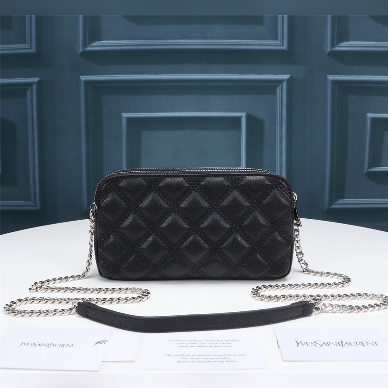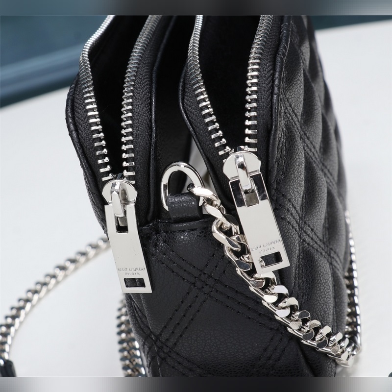 카운터에 진열된 최신 BECKY 다이아몬드 퀼팅 더블 지퍼 클러치 백은