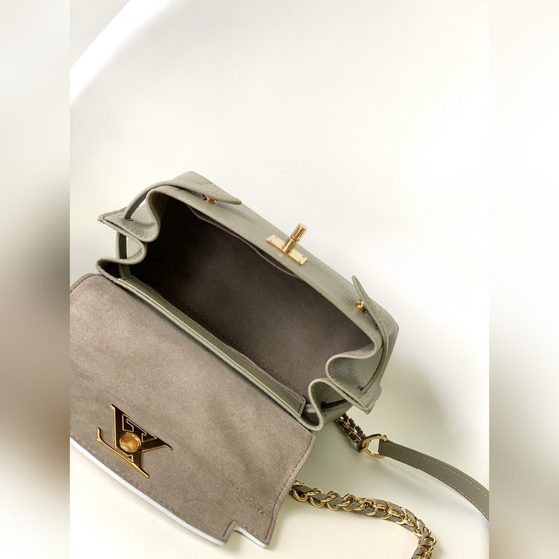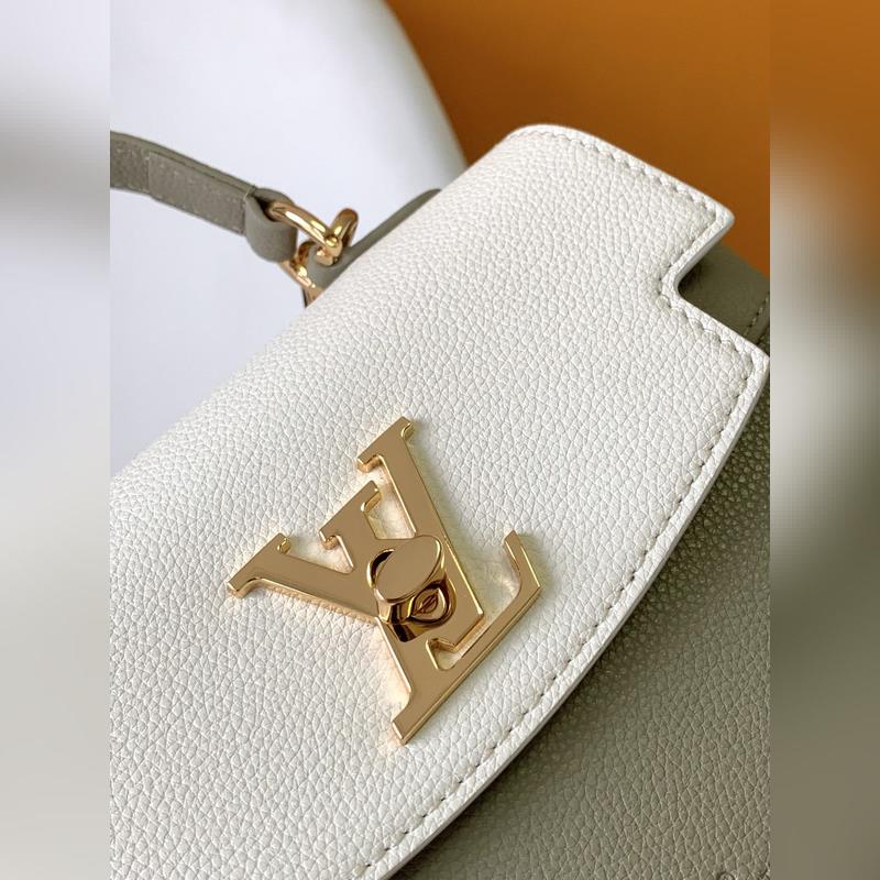 M23075 녹색과 흰색 M20997 검은색 M21502 회색 M22626 분홍색과 흰색 M21088 누드 핑크 M23442 보라색과 흰색 이 Lockme Ever 미니 백은 루이비통의 저택에서 영감을 받은 우아한 색상 팔레트를 사용하며 그레인드 소가죽에 광택이 나는 금속 장식을 더해 세련된 느낌을 줍니다. 엮은 체인은 어깨에 메거나 몸에 둘러 메기 편하게 만들어 주며 상단 손잡이는 손에 쥐기 편하게 만들어 줍니다. 23 x 17 x 10cm (길이 x 높이 x 폭)