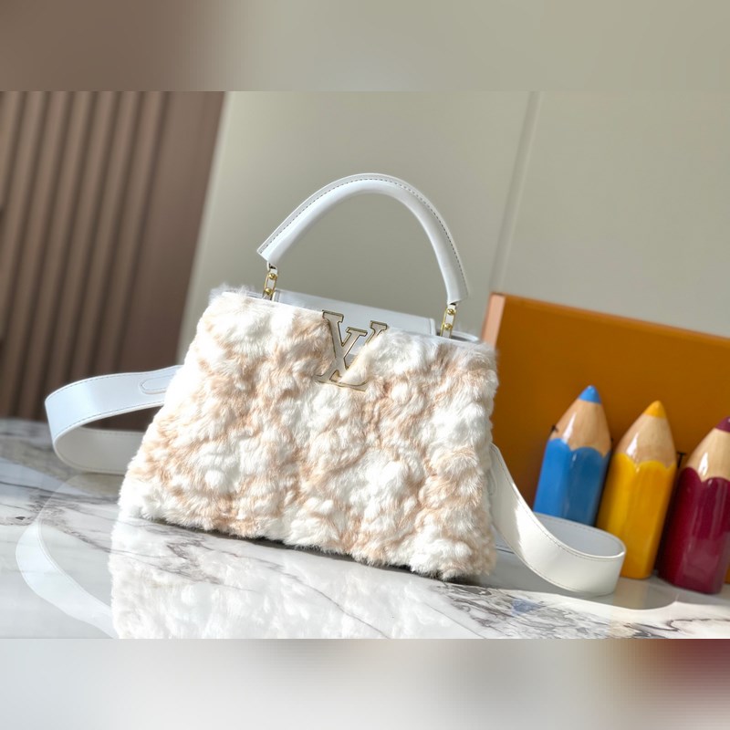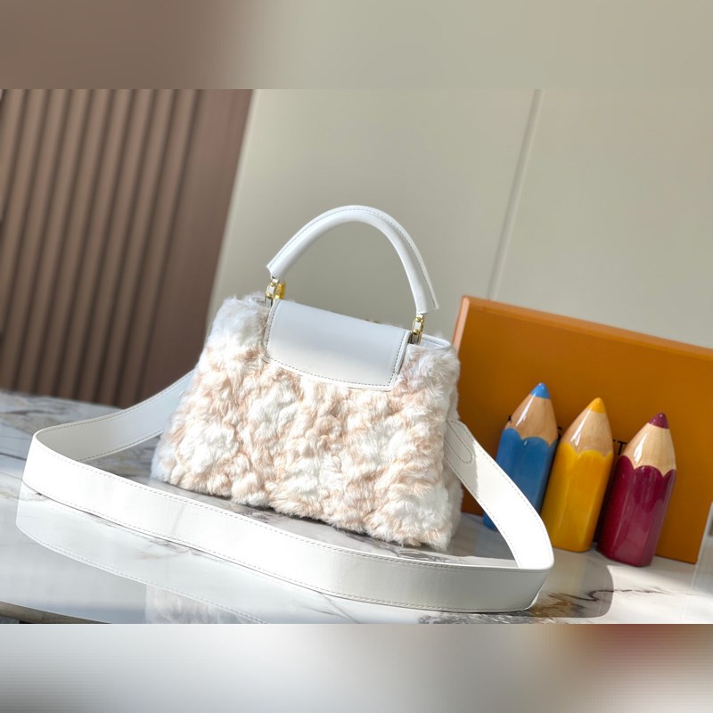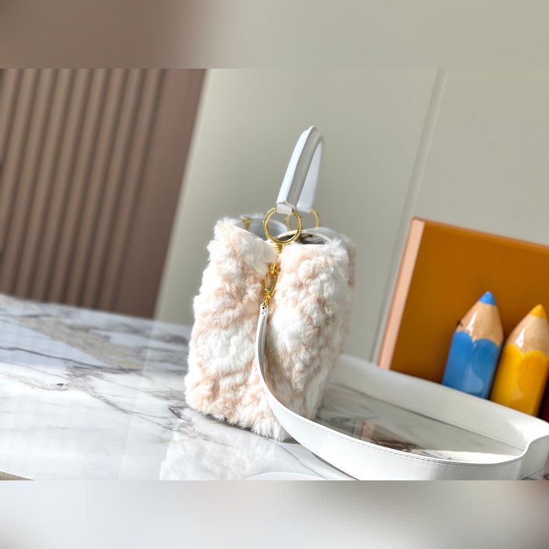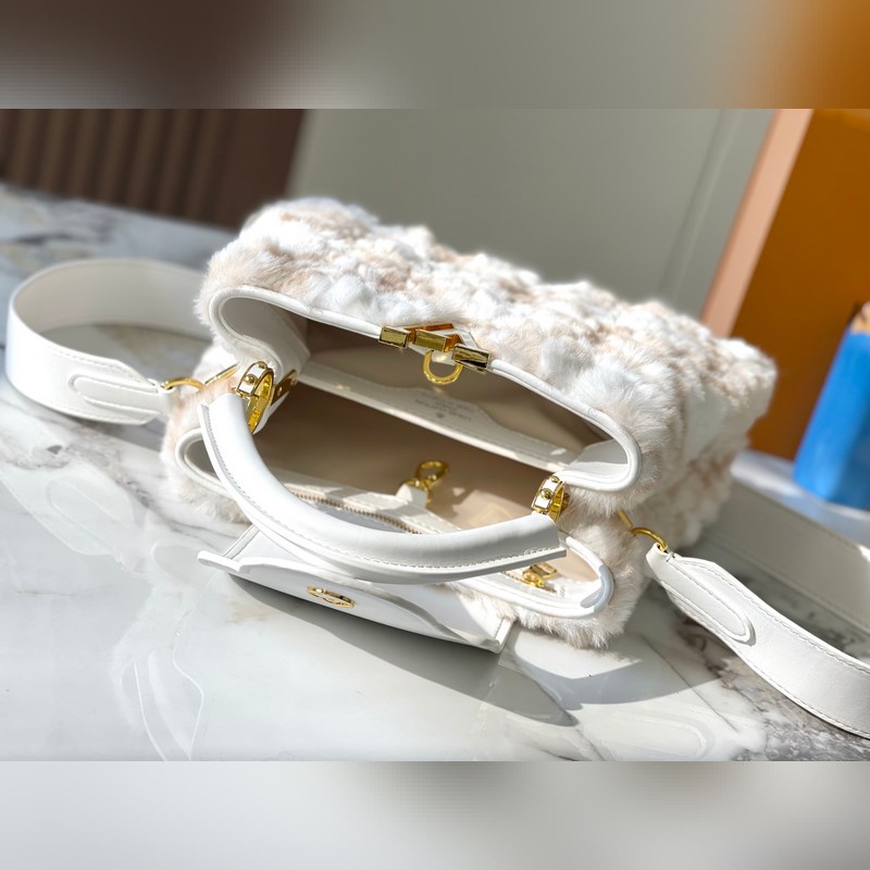 M22668 화이트 라지 2024년 신상 컬렉션 이 모델은 눈부신 광채를 발산하는 딥 파일 모노그램 패브릭에 고급스러운 밍크 코키네스를 적용한 것이 특징입니다. 짠 체인 숄더 스트랩이 함께 제공되어 몸에 걸치거나 어깨에 메는 등 다양한 연출이 가능하여 화려한 이브닝 룩에 강렬한 악센트를 더해줍니다. 상세 특징: 27 x 18 x 9 cm (길이 x 높이 x 너비)