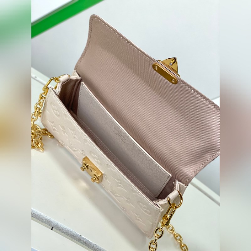 [하이위안 외곽에서 찍은 실제 가족 사진] M82637 검정 M82836 흰색 월렛 온 체인 메티스 체인백은 그레인드 MJS 모노그램 엠레인트 가죽으로 만들어졌으며 모노그램 패턴이 양각으로 새겨져 있습니다. 독특한 외관 사다리꼴 디자인 클래식한 루이비통 여행 가방에서 유래된 S자형 버클로 고정되는 앞쪽 덮개가 특징입니다. 탈착식 체인으로 크로스 바디로 착용할 수 있습니다. 크기: 22.0 x 15.0 x 5.5cm