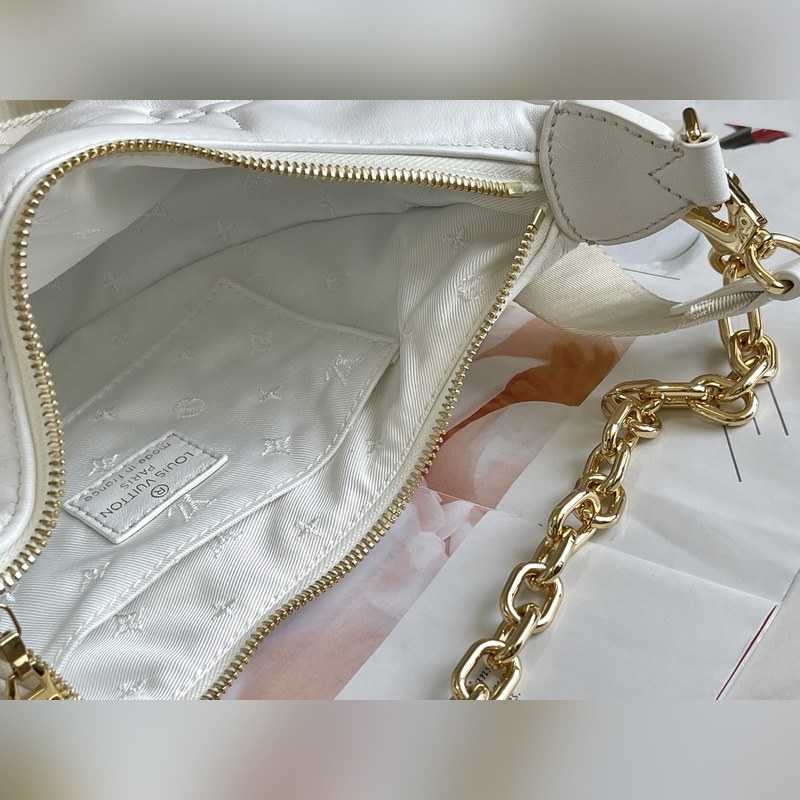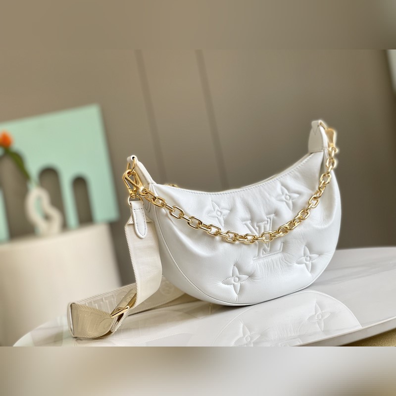 해외 오리지널 싱글 59823 최상급 양가죽 5가지 색상으로 제공되는 이 오버 더 문 핸드백은 유연한 형태를 가진 통통한 퀼팅 소가죽으로 만들어졌으며 모노그램 자수가 엄숙함을 더해줍니다. 조절식 어깨끈과 체인을 사용하면 팔꿈치에 매거나 짧은 어깨에 매거나 크로스 바디로 매거나 긴 어깨에 매는 등 다양한 방법으로 사용할 수 있습니다. 어깨끈을 제거하면 외출 시 클러치 백으로 사용할 수 있습니다. 27.5 x 16 x 7cm(길이 x 높이 x 너비)