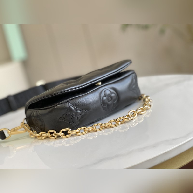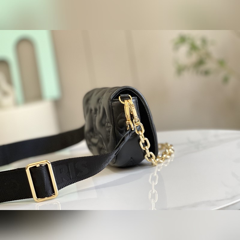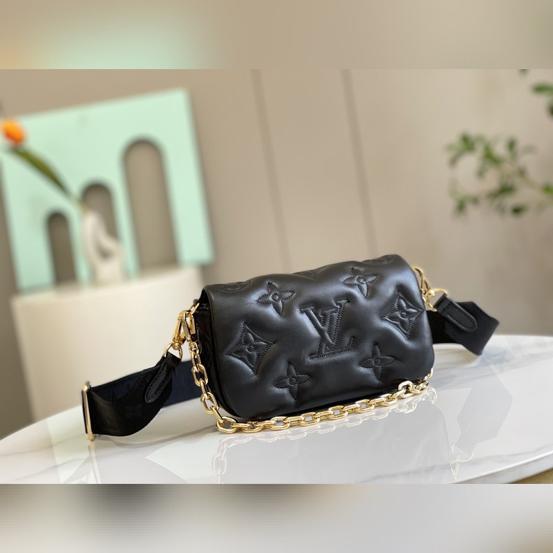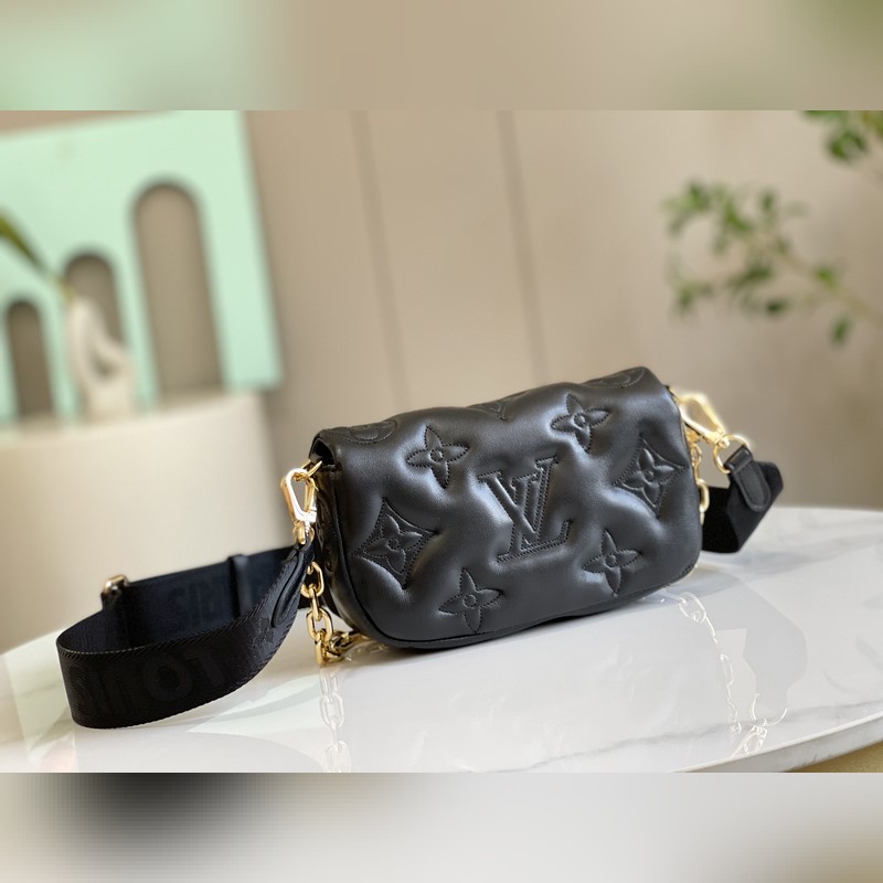 [축하하다] [축하하다] 81399 새로운 3색 Wallet on Stra 핸드백은 부드러운 패딩 소가죽에 클래식한 모노그램 패턴 자수가 특징인 버블그램 시리즈 제품입니다. 자석으로 여닫는 덮개를 열면 트렌디한 구성이 드러납니다. 다이나믹한 나일론 숄더 스트랩은 어깨에 메거나 크로스 바디로 메는 데 사용할 수 있습니다. 숄더 스트랩을 제거하면 이브닝 파티용 클러치 백으로 변신합니다. 20 x 12 x 6cm(길이 x 높이 x 너비)