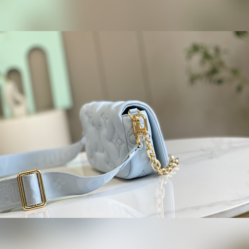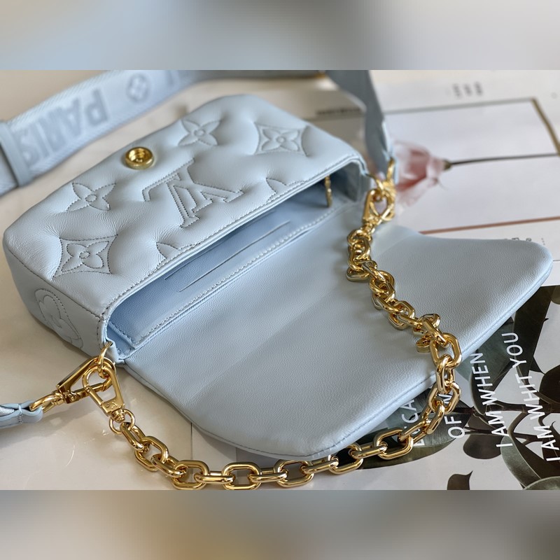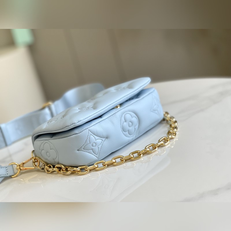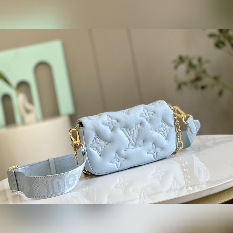 [축하하다] [축하하다] 81399 새로운 3색 Wallet on Stra 핸드백은 부드러운 패딩 소가죽에 클래식한 모노그램 패턴 자수가 특징인 버블그램 시리즈 제품입니다. 자석으로 여닫는 덮개를 열면 트렌디한 구성이 드러납니다. 다이나믹한 나일론 숄더 스트랩은 어깨에 메거나 크로스 바디로 메는 데 사용할 수 있습니다. 숄더 스트랩을 제거하면 이브닝 파티용 클러치 백으로 변신합니다. 20 x 12 x 6cm(길이 x 높이 x 너비)