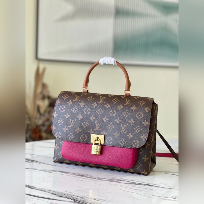 최고급 오리지널 M43959 버건디 클래식 메신저백은 깊이 있는 다이빙을 선보이며 세련된 스타일의 마리냥 핸드백을 선보입니다. 모노그램 캔버스는 송아지 가죽과 대비를 이루고 골드 자물쇠 자석 걸쇠는 복고풍의 매력을 발산합니다. 크기: 29.0 x 21.0 x 13.5cm