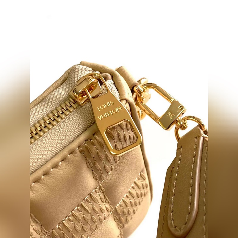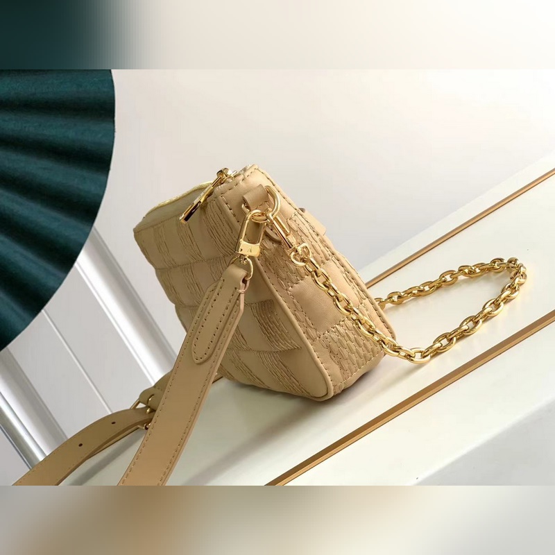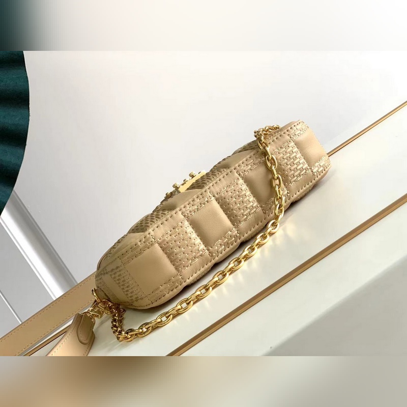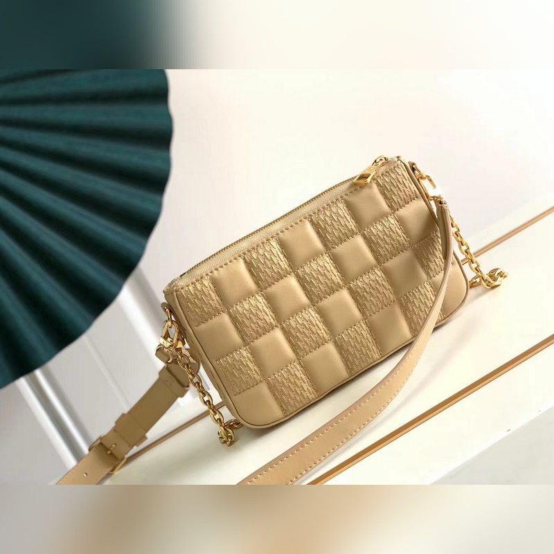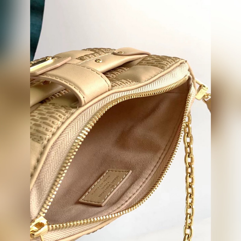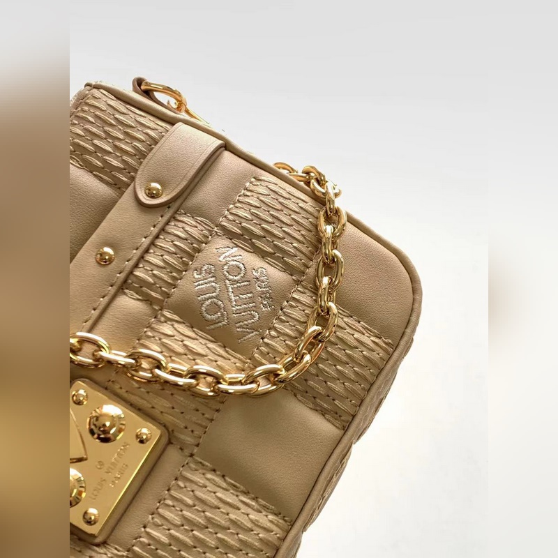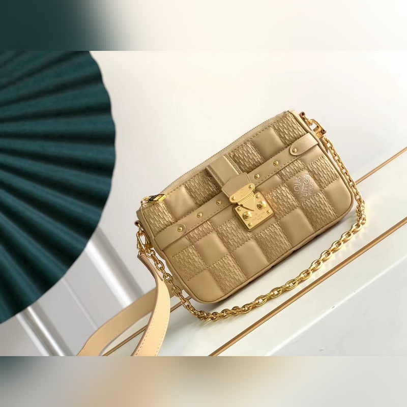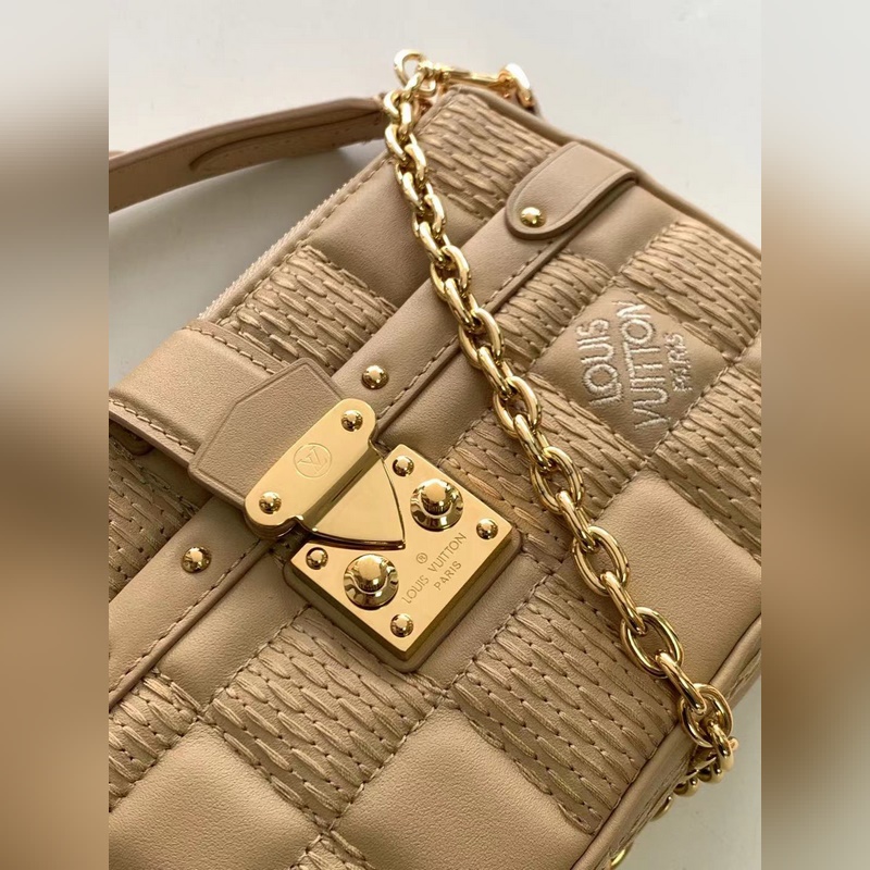M59046 오셰트 트로카 핸드백은 루이 비통의 클래식한 트로카데로 카메라 가방의 박스형 형태를 따르며 상징적인 S-락 잠금 장치와 같은 전통적인 하드 케이스 요소를 갖추고 있습니다. 부드러운 퀼팅 양가죽 소재에 자수 다미에 패턴이 특징이며 체인 또는 길이 조절이 가능한 어깨끈을 부착하여 다양한 방법으로 휴대할 수 있습니다. 크기: 20 x 12.5 x 5cm