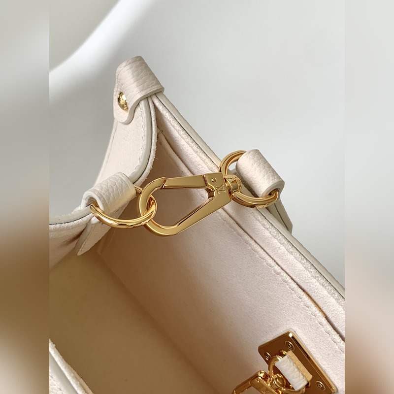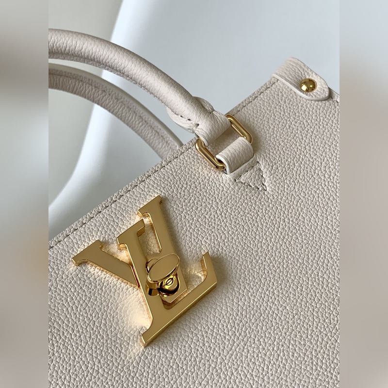 M23437 아몬드 M22311 블랙 M23637 오프화이트 최고급 오리지널 이 Lock & Go 가방은 세련된 디자인과 정교한 디테일로 트렌디한 스타일을 선사합니다. 부드러운 그레인 소가죽은 LV 트위스트 락 엠보싱 리벳 핫 스탬핑된 루이 비통 로고와 같은 디테일로 장식되어 있습니다. 상단 손잡이와 길이 조절이 가능한 탈착식 어깨 스트랩이 있어 어깨에 메거나 크로스 바디로 메는 것이 편안하여 일상적인 사용에 매우 적합합니다. 24.5 x 19.0 x 10.5cm(가로 x 세로 x 높이) 스웨이드 가죽 세밀한 소가죽 트림 극세사 안감 금속 부품 LV 트위스트 버튼 잠금 내부 패치 포켓 탈부착 및 길이 조절이 가능한 어깨 스트랩 어깨끈: 탈부착 가능 길이 조절 가능 어깨끈 길이: 17.5cm 조절 가능한 스트랩 길이: 22.0cm 핸들: 더블 핸들