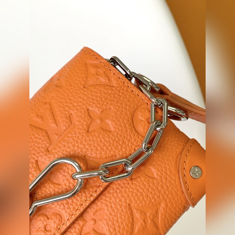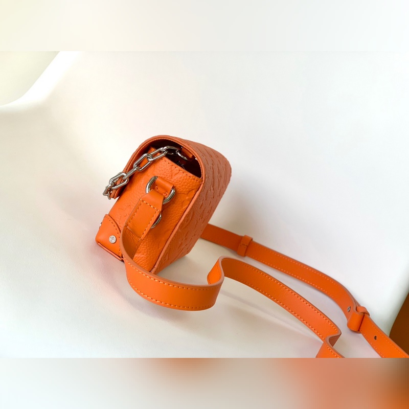 M82917 노랑 M82916 주황 M82918 녹색 이 스티머 미니 가방은 밝은 색상의 타우리옹 가죽으로 만들어졌으며 브랜드의 전통적인 스티머 여행 가방에서 영감을 받았습니다. 상징적인 핀과 체인은 고전적인 요소에 마무리 터치를 더해 주며 지퍼가 달린 내부 포켓과 자석 잠금장치는 안전한 보관을 보장합니다. 18.0 x 11.0 x 6.5cm(가로 x 세로 x 높이) 모노그램 타우리옹 가죽 소가죽 안감 금속 부품 지퍼가 달린 내부 주머니 증기선식 체인 마그네틱 스냅 잠금 어깨끈: 탈부착 불가 길이 조절 가능 손잡이 길이: 55.0cm 조절 가능한 스트랩 길이: 63.0cm