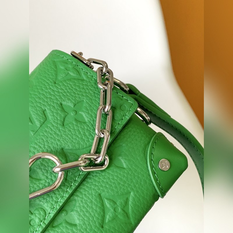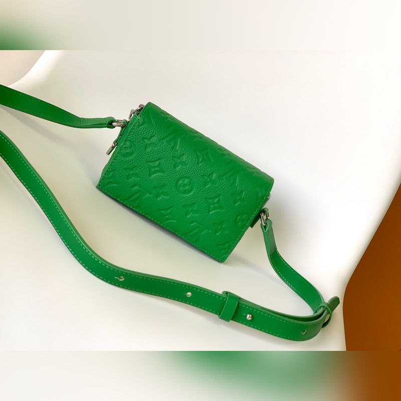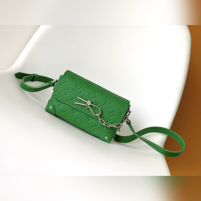 M82917 노랑 M82916 주황 M82918 녹색 이 스티머 미니 가방은 밝은 색상의 타우리옹 가죽으로 만들어졌으며 브랜드의 전통적인 스티머 여행 가방에서 영감을 받았습니다. 상징적인 핀과 체인은 고전적인 요소에 마무리 터치를 더해 주며 지퍼가 달린 내부 포켓과 자석 잠금장치는 안전한 보관을 보장합니다. 18.0 x 11.0 x 6.5cm(가로 x 세로 x 높이) 모노그램 타우리옹 가죽 소가죽 안감 금속 부품 지퍼가 달린 내부 주머니 증기선식 체인 마그네틱 스냅 잠금 어깨끈: 탈부착 불가 길이 조절 가능 손잡이 길이: 55.0cm 조절 가능한 스트랩 길이: 63.0cm