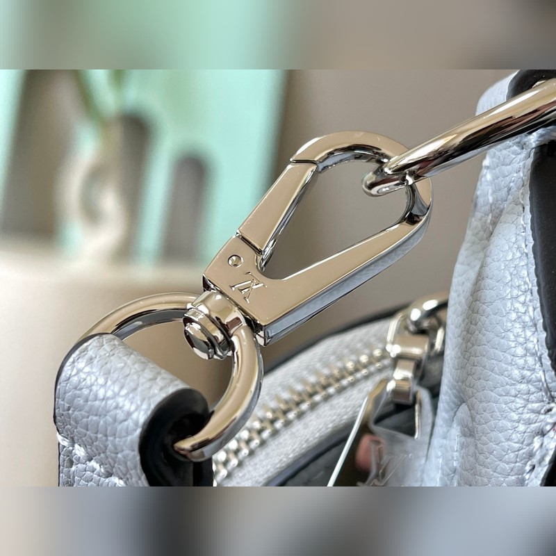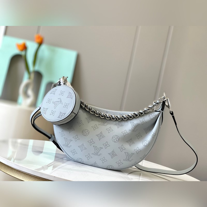 최고 품질의 오리지널 22959 이 바이아 소형 가방은 부드럽고 드레이핑이 가능한 천공 소가죽으로 만들어졌으며 마히나 시리즈에 편안하고 매력적인 반달 모양을 더해줍니다. 가죽과 금속으로 엮은 손잡이와 길이 조절이 가능한 긴 어깨끈의 조합으로 어깨에 메거나 크로스 바디로 메는 것이 가능하며 동전 지갑이 디테일을 더해줍니다. 26 x 17 x 7.5cm(길이 x 높이 x 너비)