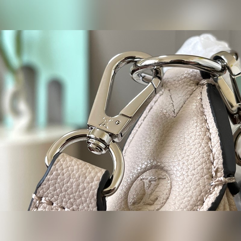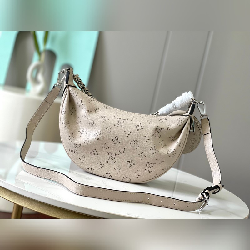 최고 품질의 오리지널 22959 이 바이아 소형 가방은 부드럽고 드레이핑이 가능한 천공 소가죽으로 만들어졌으며 마히나 시리즈에 편안하고 매력적인 반달 모양을 더해줍니다. 가죽과 금속으로 엮은 손잡이와 길이 조절이 가능한 긴 어깨끈의 조합으로 어깨에 메거나 크로스 바디로 메는 것이 가능하며 동전 지갑이 디테일을 더해줍니다. 26 x 17 x 7.5cm(길이 x 높이 x 너비)
