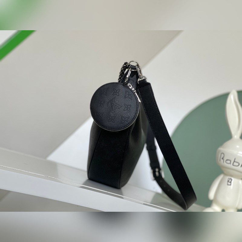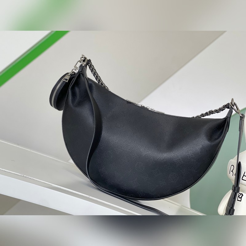 [하이위안 외곽 단독주택 독립 촬영] M22822 검정색 Baia 중형 가방은 가죽의 드레이핑 질감을 가지고 있으며 부드럽고 매력적인 초승달 모양의 실루엣으로 마히나 시리즈에 추가되었습니다. 둥근 동전 지갑은 클래식한 디테일을 강조하며 넉넉한 구성은 도시 생활의 리듬에 잘 맞습니다. 가죽과 금속으로 엮은 손잡이와 길이 조절이 가능한 어깨 끈의 조합으로 다양한 운반 스타일을 가능하게 합니다. 36.5 x 23.0 x 8.0cm(길이 x 높이 x 너비)