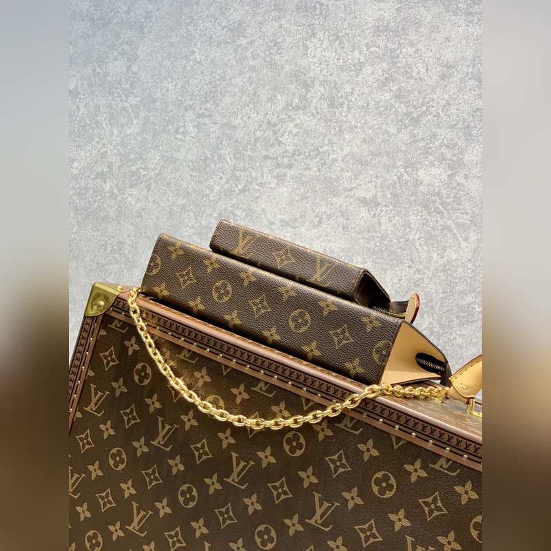 원래의 M47543 독서용 안경 세트는 모노그램 이클립스 캔버스로 만들어졌습니다. 이 새로운 중형 가방은 튼튼한 스타일로 개인 필수품을 쉽게 보관할 수 있습니다. 크기: 26x20x3cm.