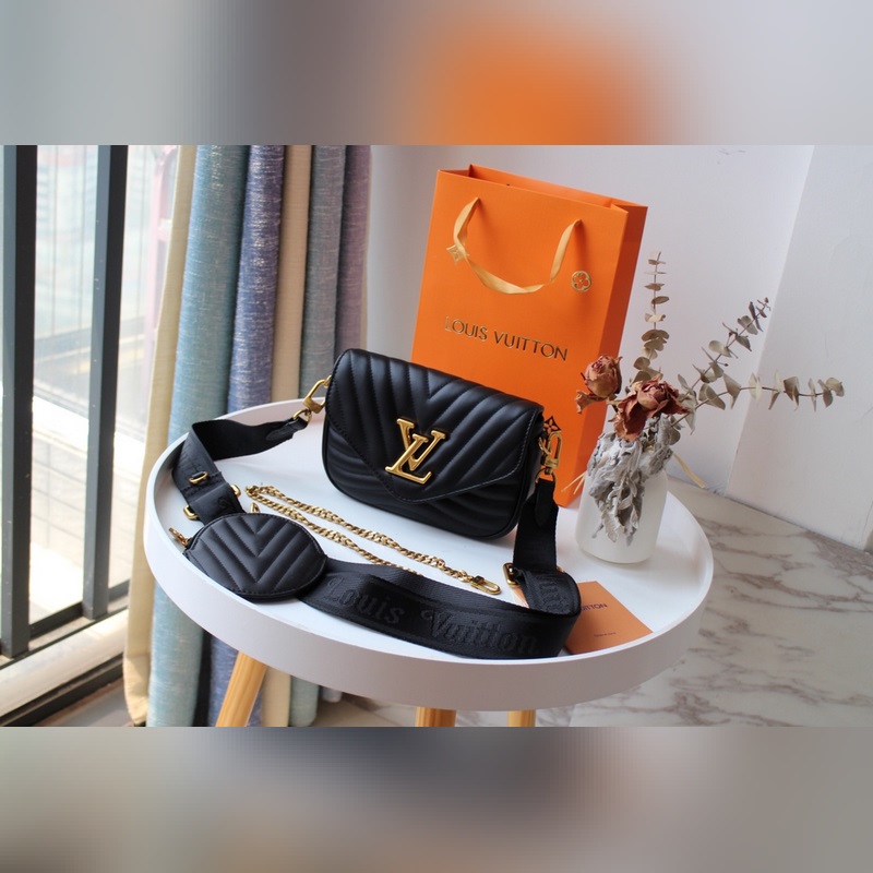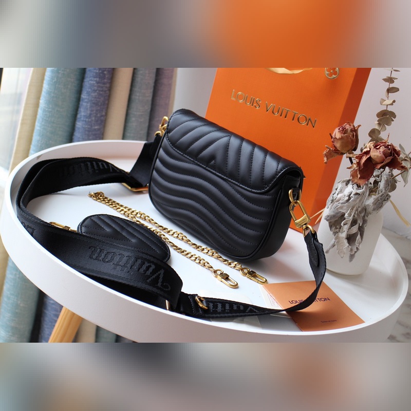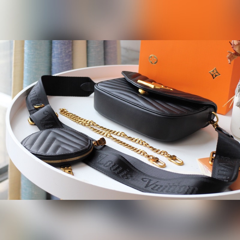 M56461 최고 품질의 오리지널 멀티 파쎄트 뉴 웨이브 핸드백은 실크 퀼팅 송아지 가죽으로 제작되었으며 생동감 있는 디자인 길이 조절이 가능한 어깨 끈 오래된 금속 장식 브론즈 골드 체인 RUDERER 모노그램 자카드 어깨 끈이 특징입니다. 크로스 바디 등 다양한 휴대 방법을 제공하며 어깨 끈에 달린 동전 지갑은 열쇠 동전 등을 보관할 수 있습니다! 크기: 21x13x6.5cm