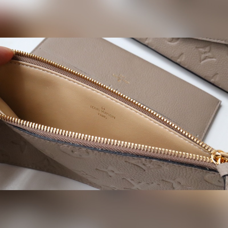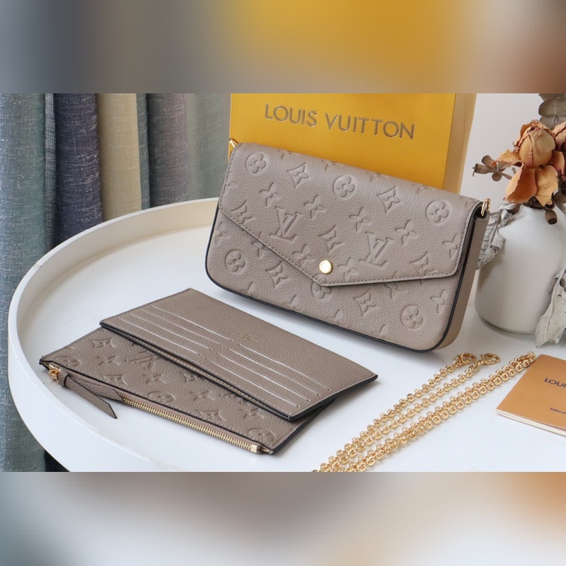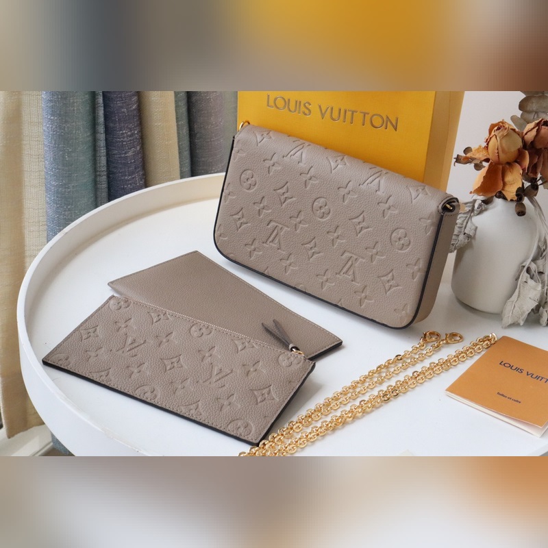 M68697 회색! 포쉐트 펠리시 체인백 모노그램 앙프렝뜨 소가죽으로 제작된 포쉐트 펠리시 체인백은 탈착 가능한 포켓 두 개가 있어 일상적인 물건을 휴대하고 정리하는 데 스타일리시한 방법을 제공합니다. 21.0 x 12.0 x 3.0cm(가로 x 세로 x 높이).