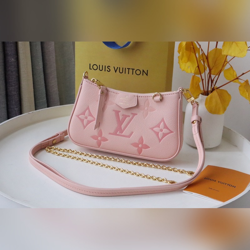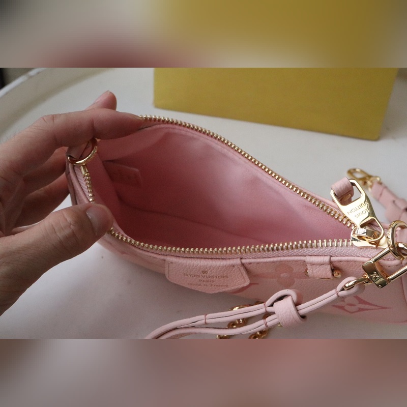[이지 파우치 핸드백] M82346 M80349 핑크 그라데이션 LV 그라디언트 컬렉션의 이지 파우치 핸드백은 모노그램 앙프렝뜨 엠보싱 가죽으로 만들어졌으며 화려한 여름의 석양 색상을 띠고 있습니다. 29 x 11.5 x 3cm(길이 x 높이 x 너비)