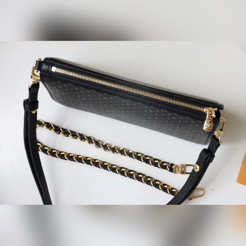 렉싱턴 파우치 핸드백 M82232 최상위 레이어 렉싱턴 파우치 핸드백은 나노그램 가죽 제품 에디션의 일부이며 루이비통 2023 봄/여름 패션쇼에서 선보였습니다. 부드러운 송아지 가죽으로 엠보싱 처리되어 있으며 상징적인 모노그램 패턴의 미니어처 버전을 특징으로 하여 미묘한 투톤 효과를 만들어 냅니다. 이 깔끔한 지퍼백은 탈부착이 가능한 꼰 체인과 분리 및 길이 조절이 가능한 스트랩 덕분에 다양한 운반 옵션을 제공합니다. 크기: 21.5 x 13 x 5.5cm