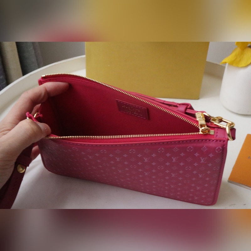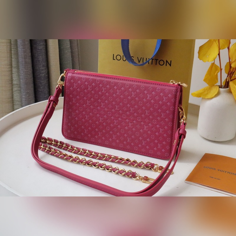 렉싱턴 파우치 핸드백 M82232 최상위 레이어 렉싱턴 파우치 핸드백은 나노그램 가죽 제품 에디션의 일부로 루이비통 2023 봄/여름 패션쇼에서 선보였습니다. 부드러운 송아지 가죽으로 엠보싱 처리되어 있으며 상징적인 모노그램 패턴의 미니어처 버전을 특징으로 하여 미묘한 투톤 효과를 연출합니다. 이 깔끔한 지퍼백은 탈착식 브레이드 체인과 분리 가능한 조절식 스트랩 덕분에 다양한 운반 옵션을 제공합니다. 크기: 21.5 x 13 x 5.5cm