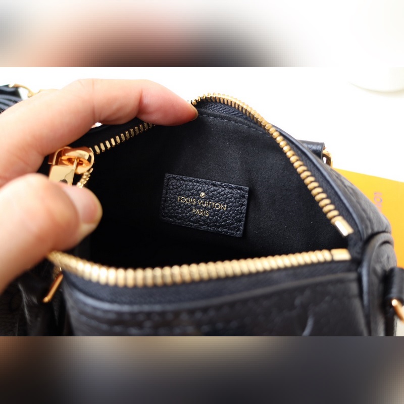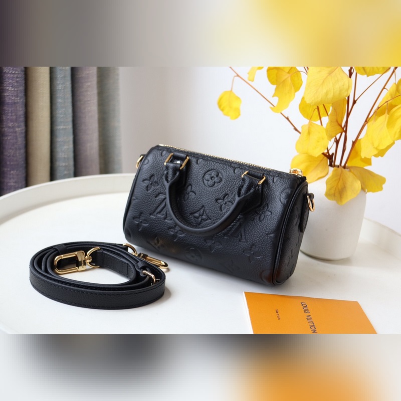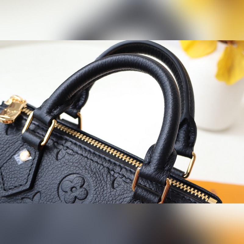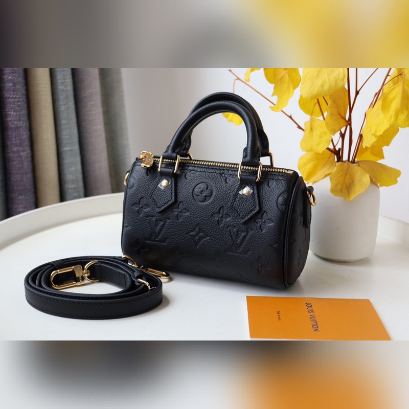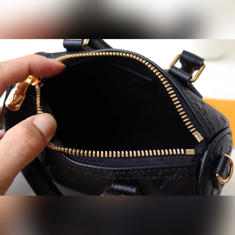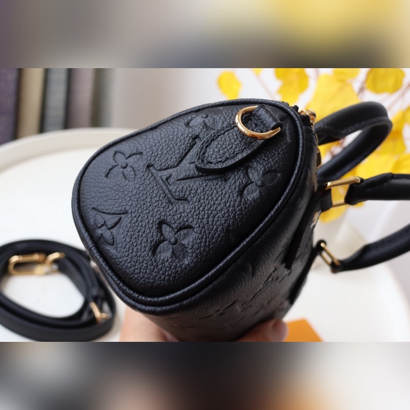 해외 오리지널 싱글 M82450 독점 리얼 샷! 최상층 이 나노 스피디 백은 스피디 백의 클래식한 실루엣을 모노그램 엠프린트 그레인 가죽에 엠보싱 처리된 모노그램 패턴으로 압축하여 부드럽고 둥근 모양으로 만들어 편안하게 맞습니다. 상단 손잡이와 탈부착 및 길이 조절이 가능한 어깨 스트랩으로 다양한 운반 옵션을 제공합니다. 크기: 16×10×7.5cm