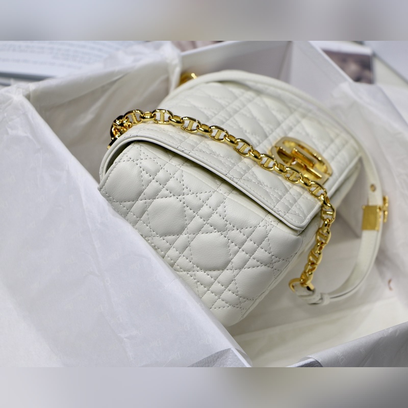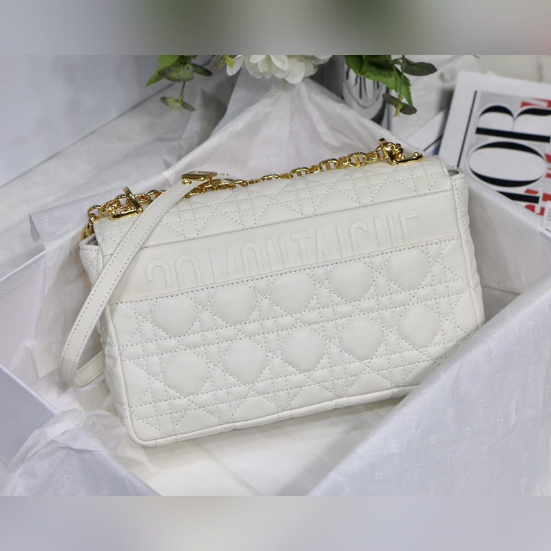 중간 25.5cm 새로운 Di.or Caro 핸드백은 소가죽으로 제작되었으며 상징적인 등나무 체크 스티치로 장식되어 있습니다. 소재는 부드럽고 플랩은 크리스챤 디올 향수병의 마개에서 영감을 받은 레트로한 골드 마감의 금속 C.D 걸쇠로 장식되어 있습니다. 작은 모델에는 탈부착이 가능한 시그니처 C.D 체인 숄더 스트랩이 장착되어 있으며 더 우아하고 세련된 느낌을 위해 자수 장식된 넓은 숄더 스트랩으로 교체할 수도 있습니다. 일상적인 룩과 이브닝 파티 모두에 쉽게 착용할 수 있습니다. 널링 처리된 C.D 걸쇠가 달린 플립탑 잠금장치 뒷면에 30 Montaigne 양각 로고 분리 가능하고 길이 조절이 가능한 C.D 체인 링크 숄더 스트랩과 밀리터리 스타일의 Christian Dior 버클 내부 지퍼 포켓과 패치 포켓 뒷주머니 손으로 들거나 어깨에 메거나 몸에 걸칠 수 있습니다. 크기: 25.5cm x 15.5cm x 8cm