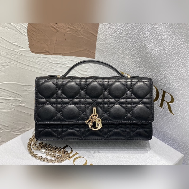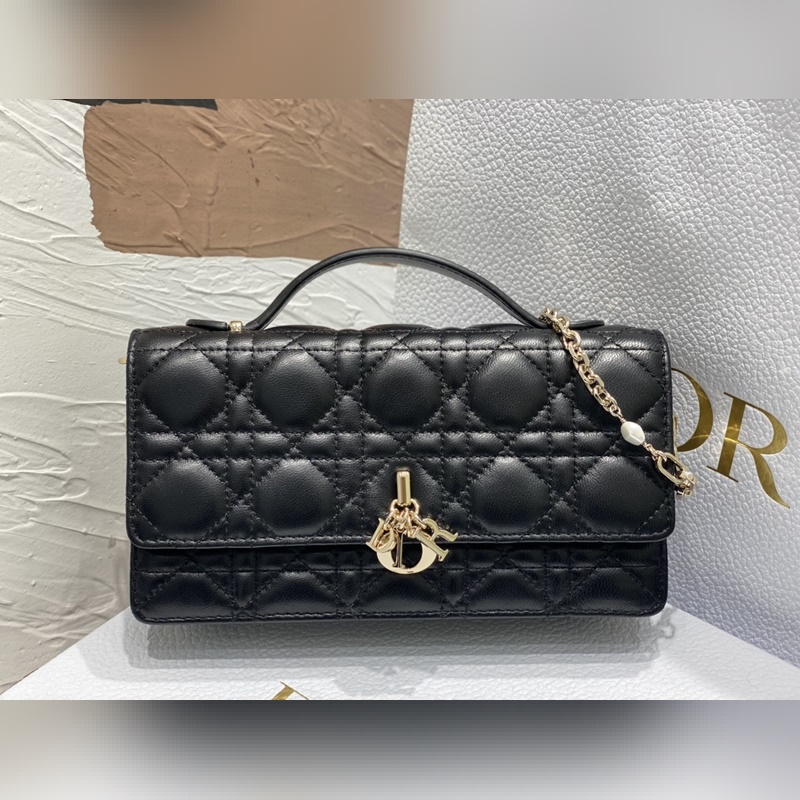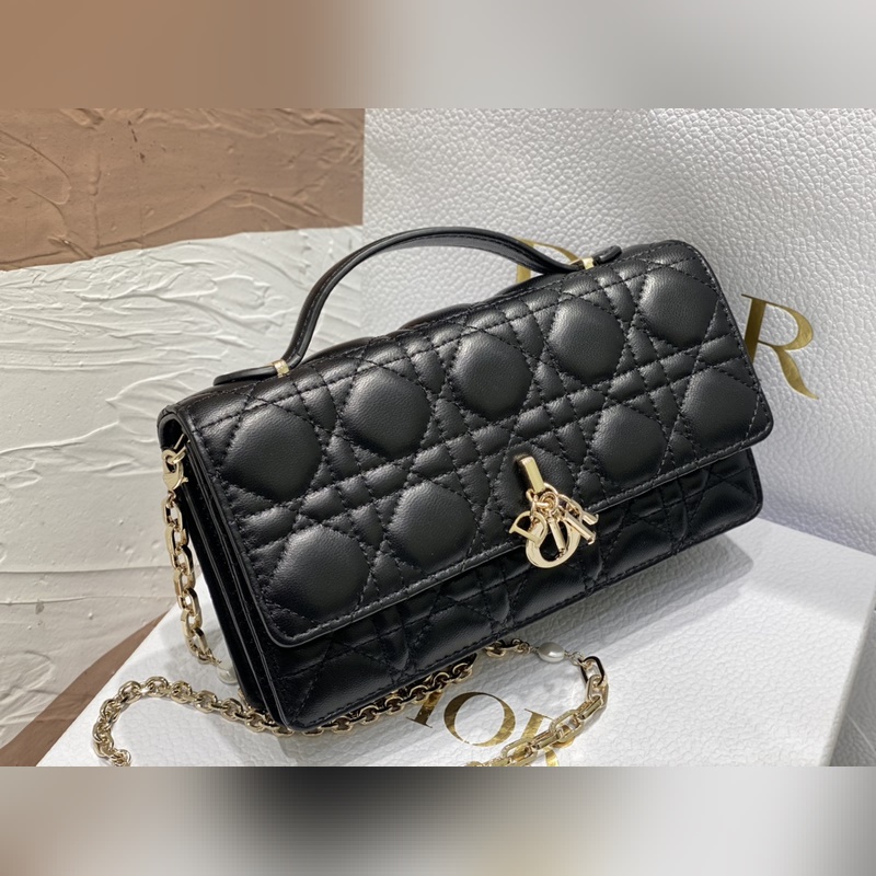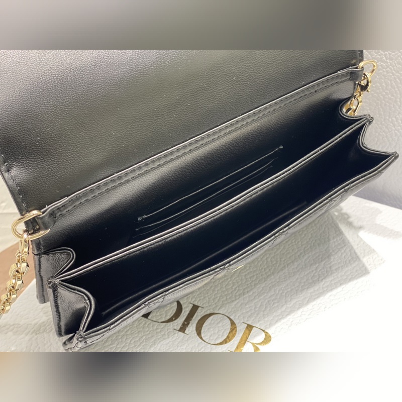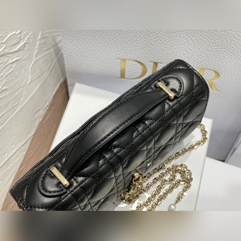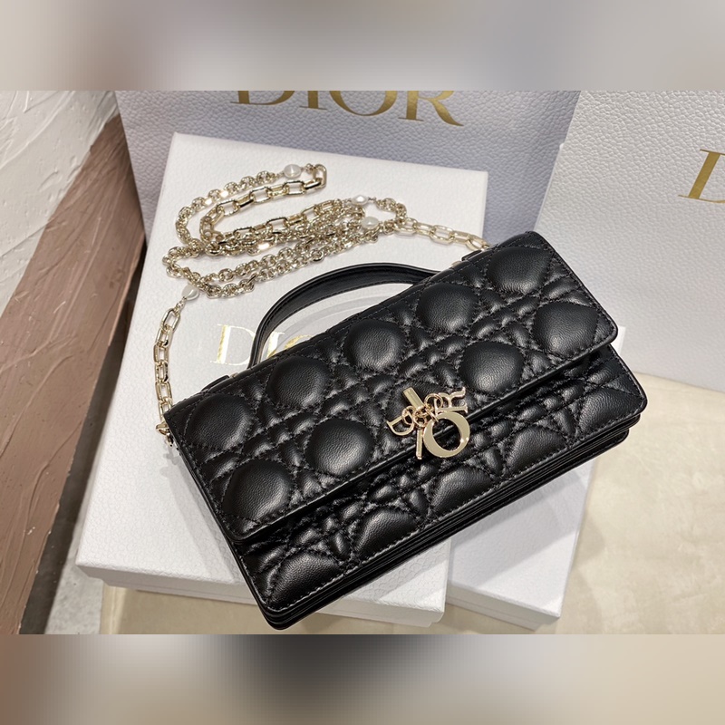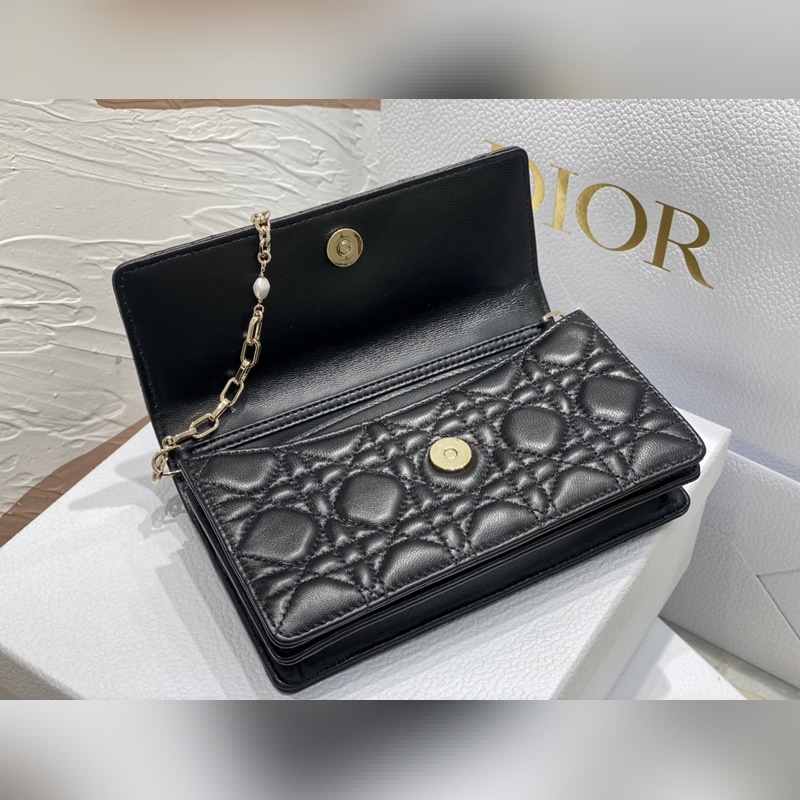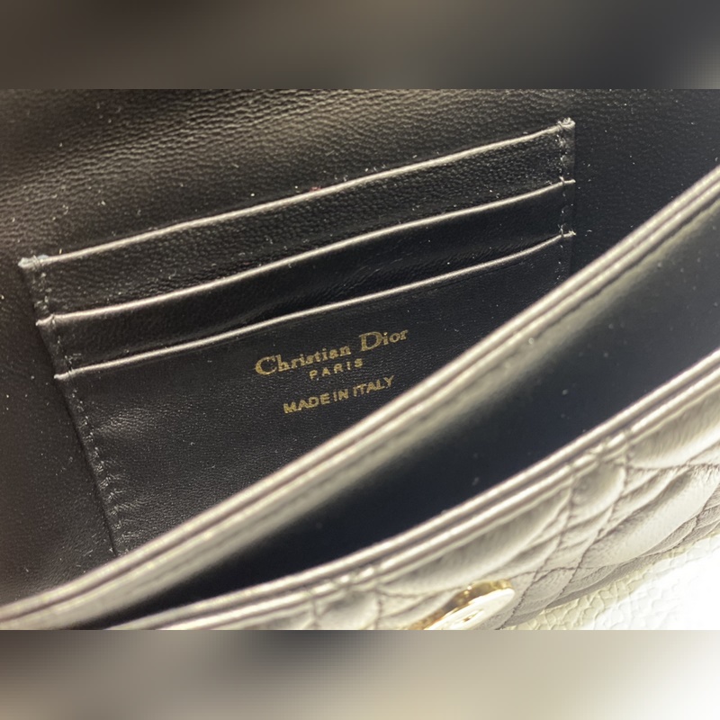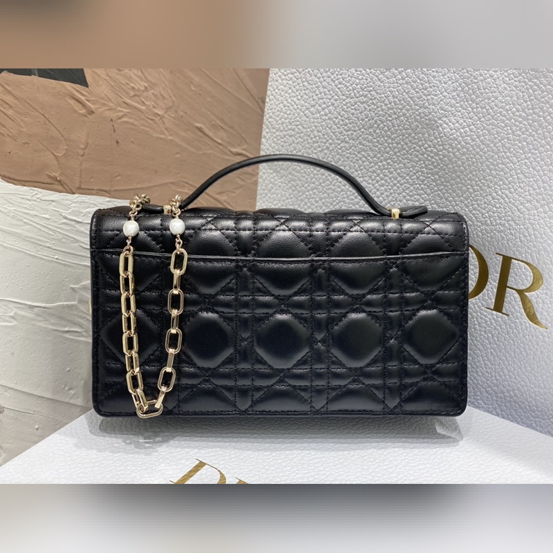 21x 11.5 x 4.5 cm D.I.O.R.의 매력이 앞면에 플랩 여밈 2개의 내부 칸막이 뒷주머니 카드 슬롯 3개 최고급 가죽 손잡이 구슬로 장식된 탈착식 체인 이탈리아산