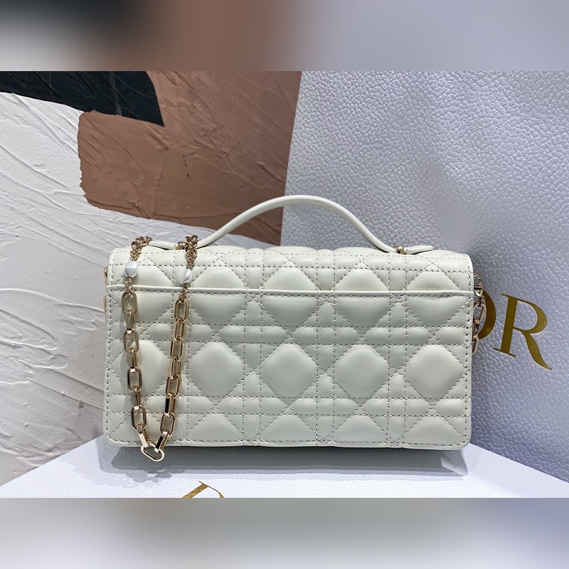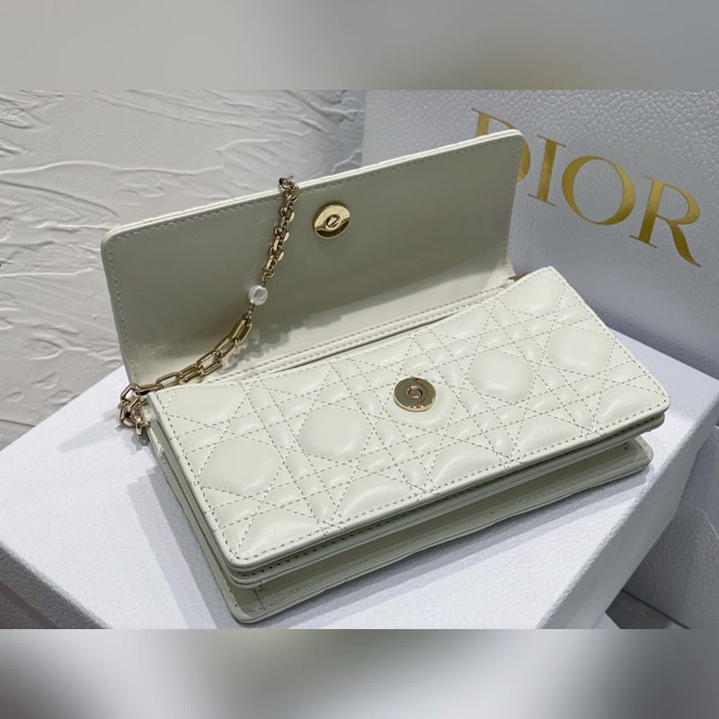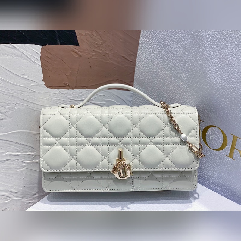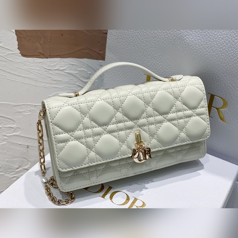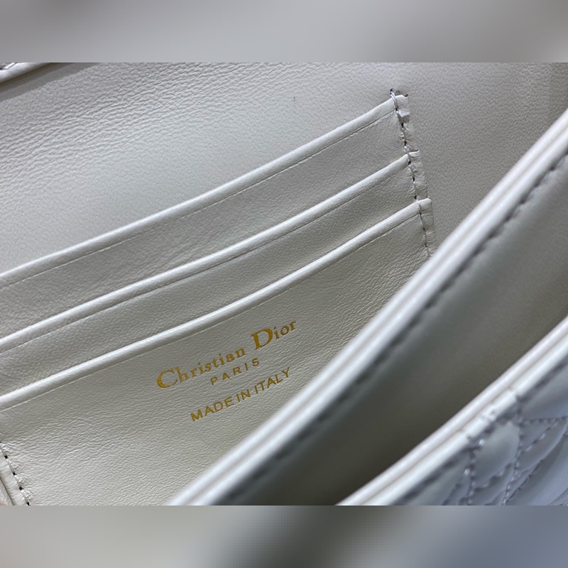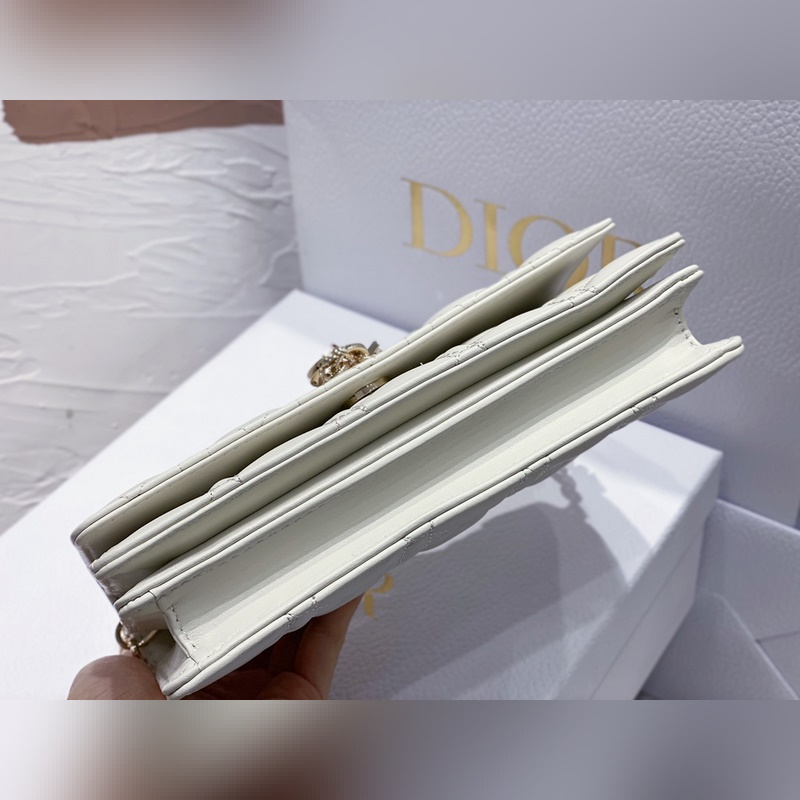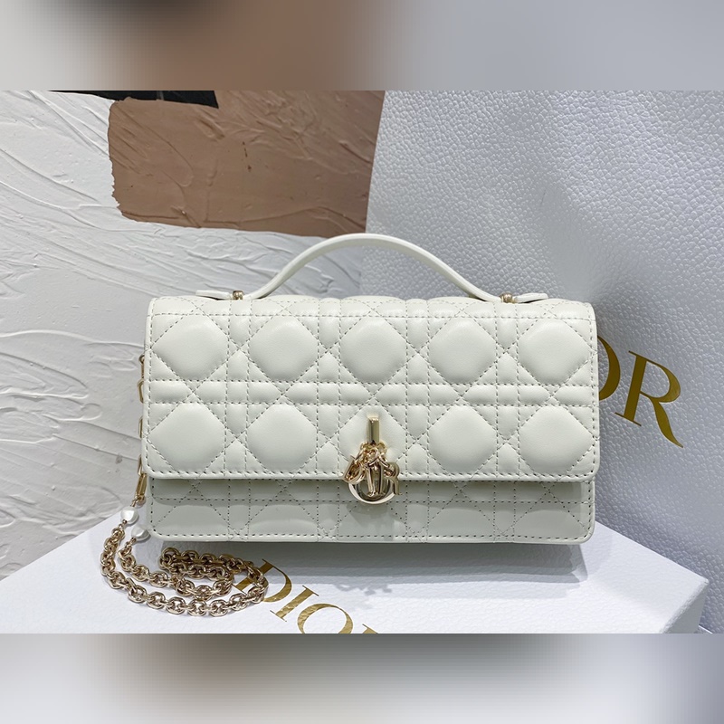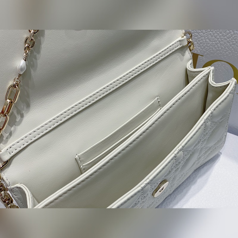 21x 11.5 x 4.5 cm D.I.O.R.의 매력이 앞면에 플랩 여밈 2개의 내부 칸막이 뒷주머니 카드 슬롯 3개 최고급 가죽 손잡이 구슬로 장식된 탈착식 체인 이탈리아산