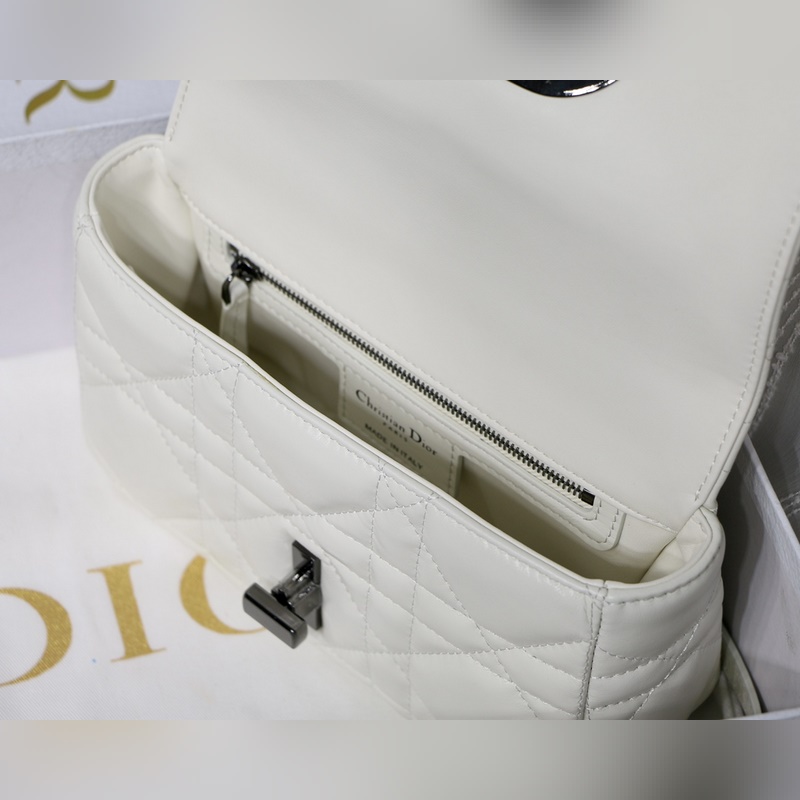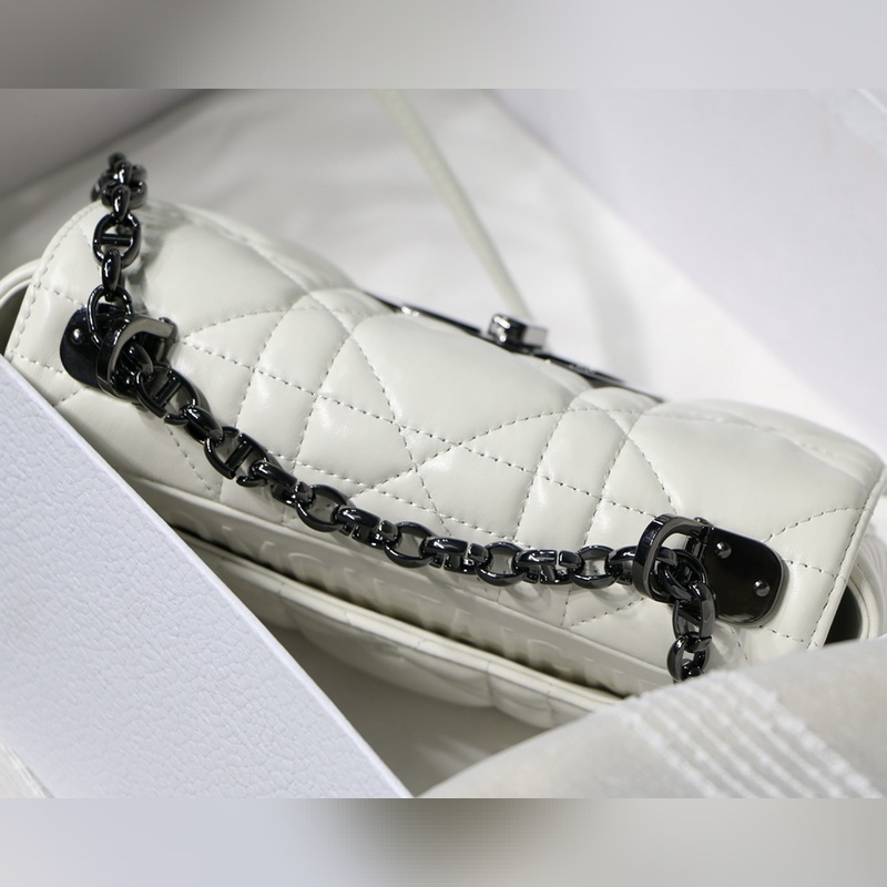 작다 [소형 사이즈: 20 x 12 x 7cm] 이 카로 백은 우아함과 모던한 느낌을 결합한 제품입니다. 소가죽으로 만들어졌으며 오버사이즈 라탄 무늬의 톱스티치로 독창적인 퀼팅 효과를 줍니다. 이 플랩은 향수병 뚜껑에서 영감을 받은 금속으로 덮인 손잡이 스타일의 C.D 걸쇠로 장식되어 있으며 탈착식 C.D 로고 체인 숄더 스트랩을 이용해 손으로 들거나 어깨에 메거나 D가 수놓인 넓은 숄더 스트랩으로 바꿔 일상복이나 이브닝 룩을 꾸밀 수 있습니다.