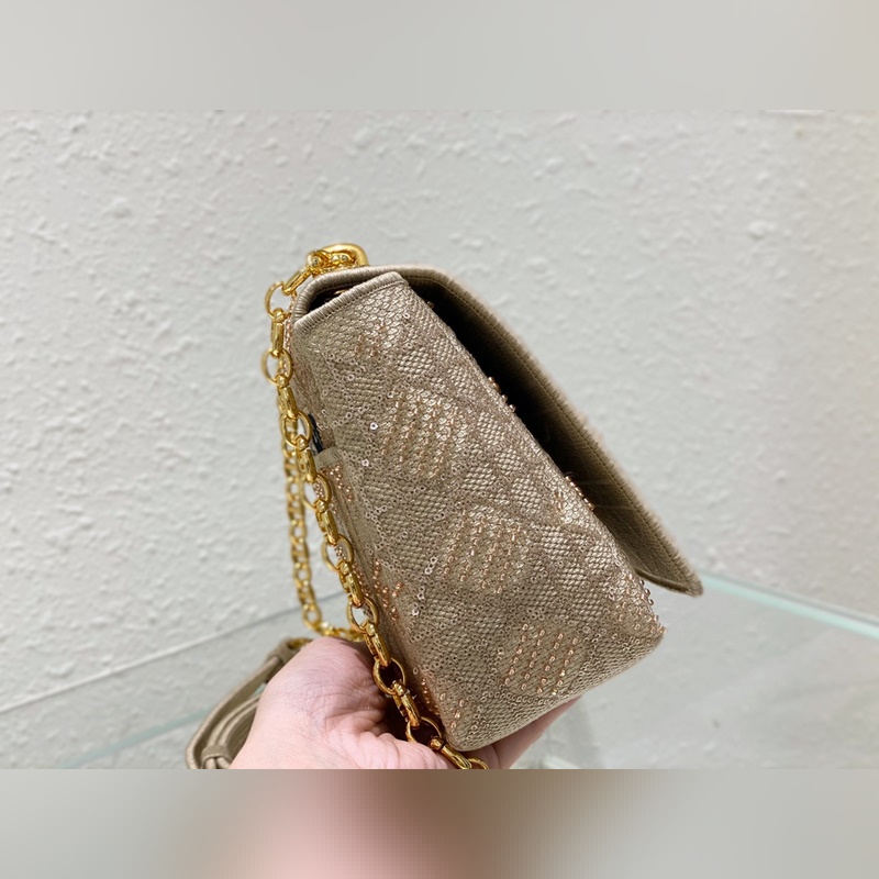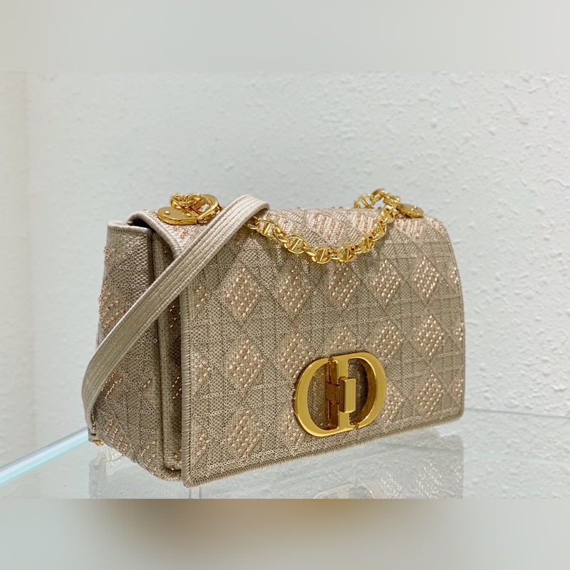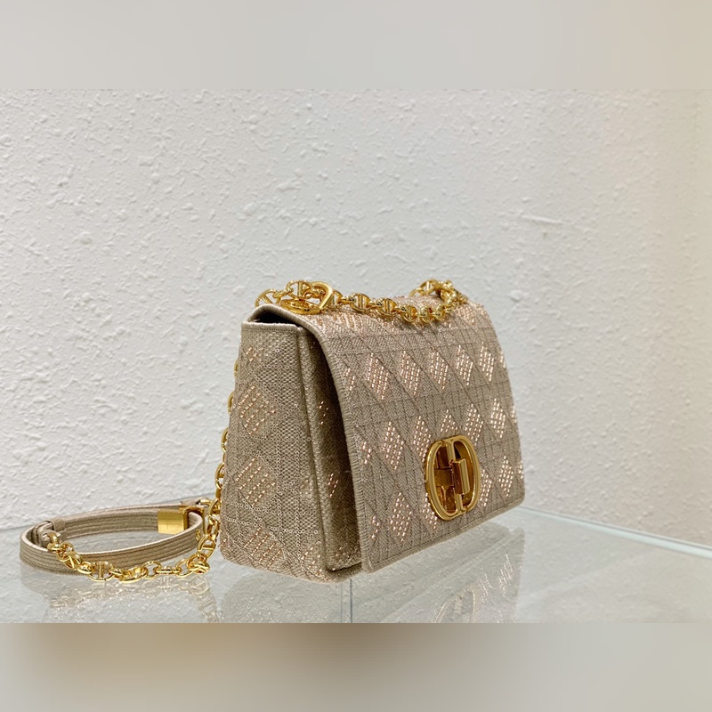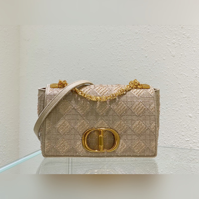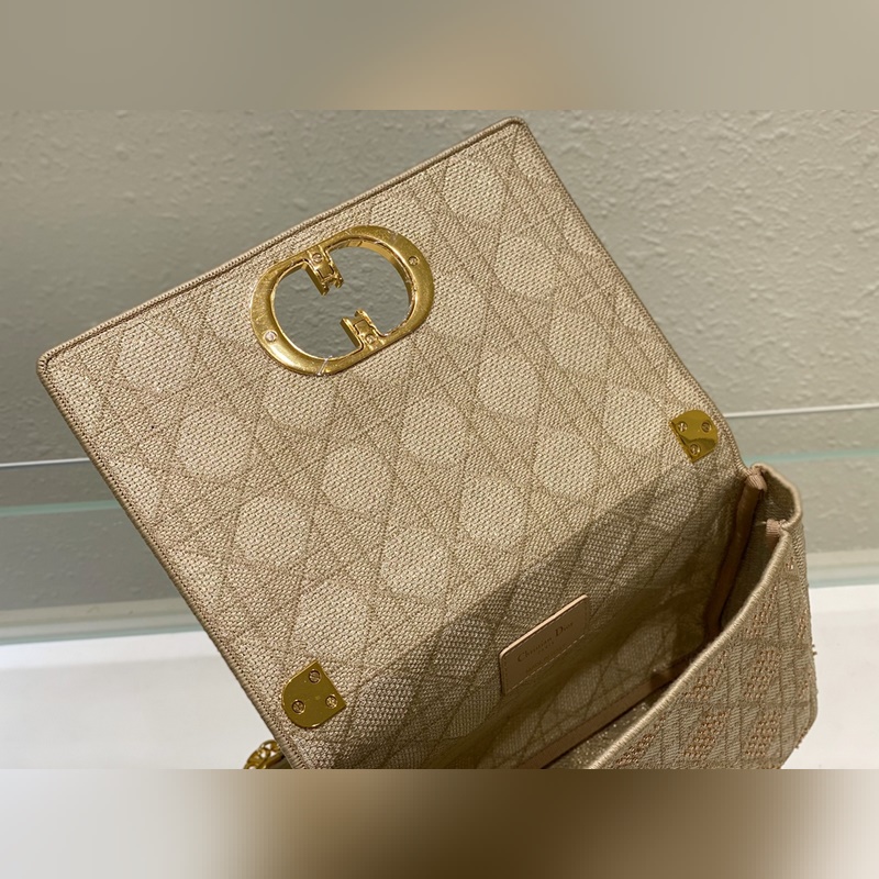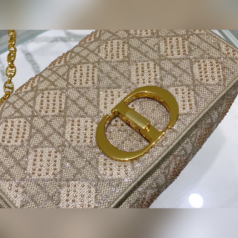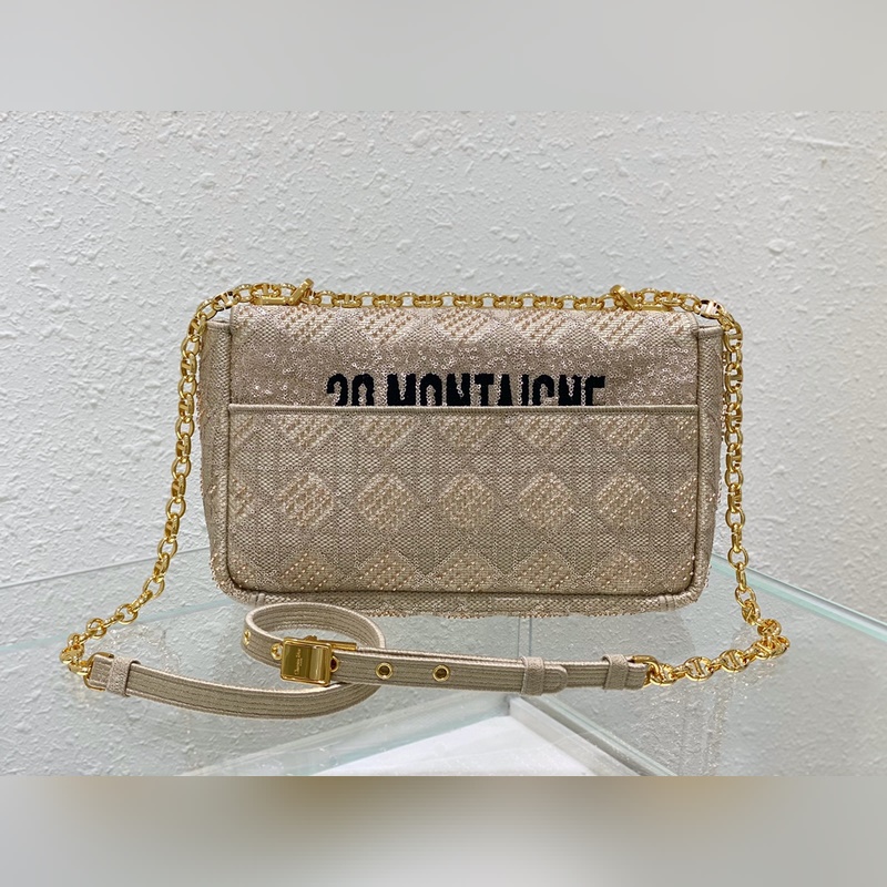 엠보싱 처리된 30 MONTAIGNE 로고 분리 가능하고 길이 조절이 가능한 CD 체인 숄더 스트랩과 밀리터리 스타일의 Christian Dior 버클 체인 개폐가 용이한 X자형 중앙 홈이 있는 체인 링크 2개 내부 지퍼 포켓과 패치 포켓 뒷주머니 다른 자수 스트랩과 함께 착용 가능 먼지 봉투 포함 크기 25cm