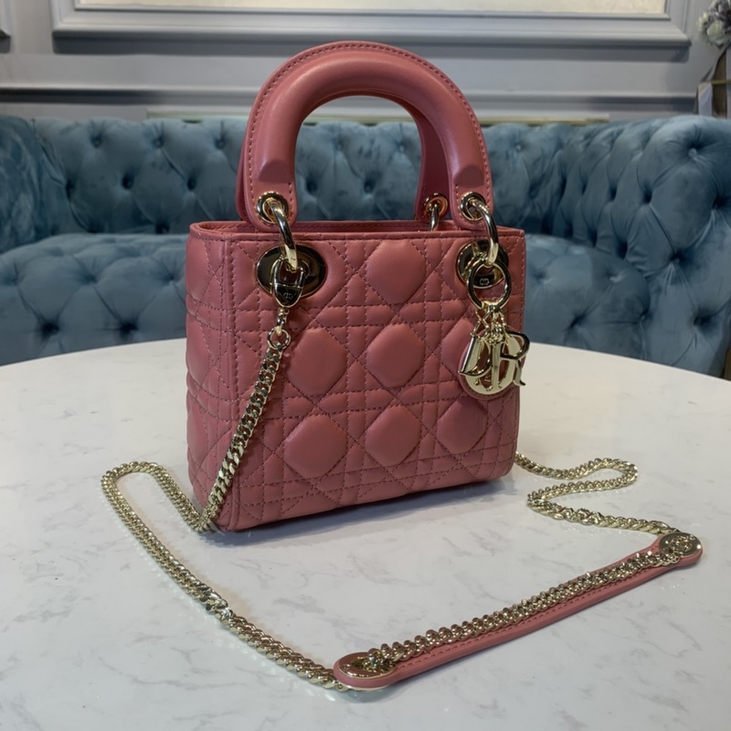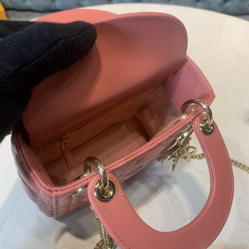 5055-코랄 핑크 양가죽 이 가방은 디올의 고전적인 아름다움을 강조합니