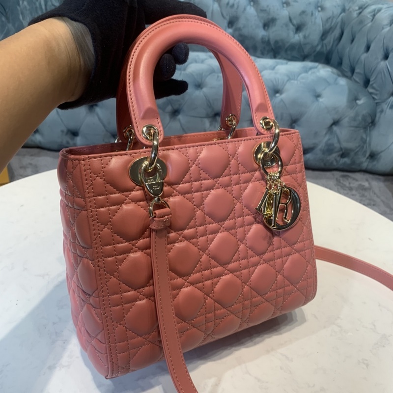 5655-코랄 핑크와 골드 이 클러치 백은 디올의 우아함과 클래식한 아름