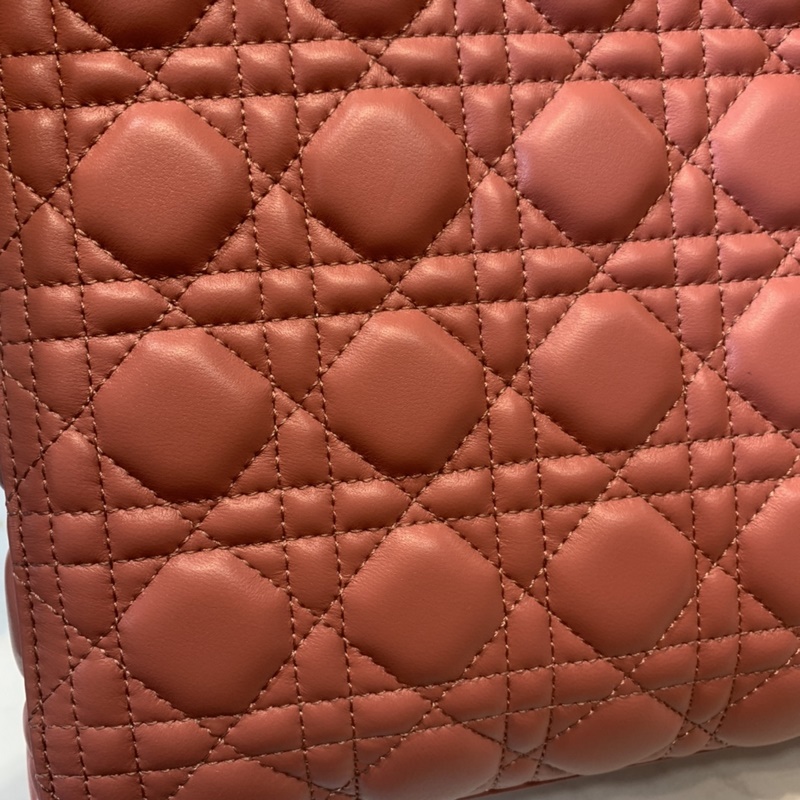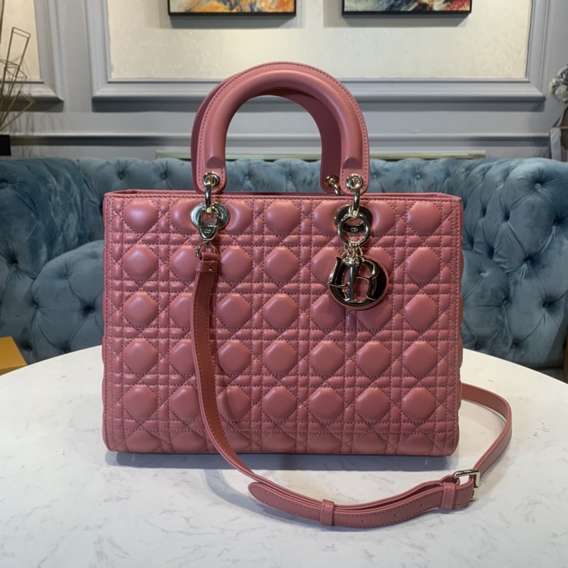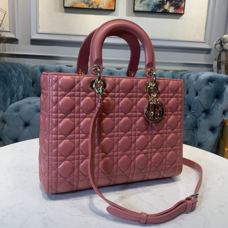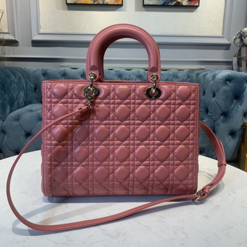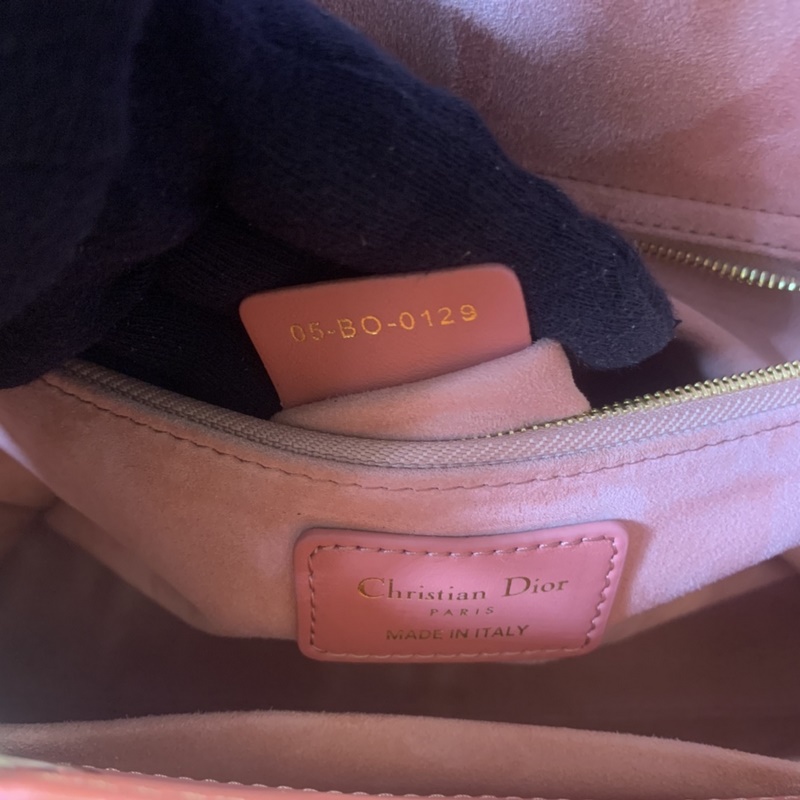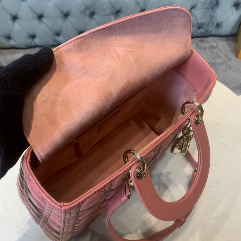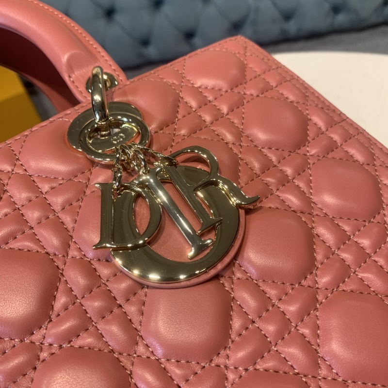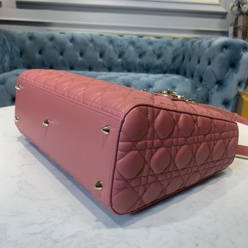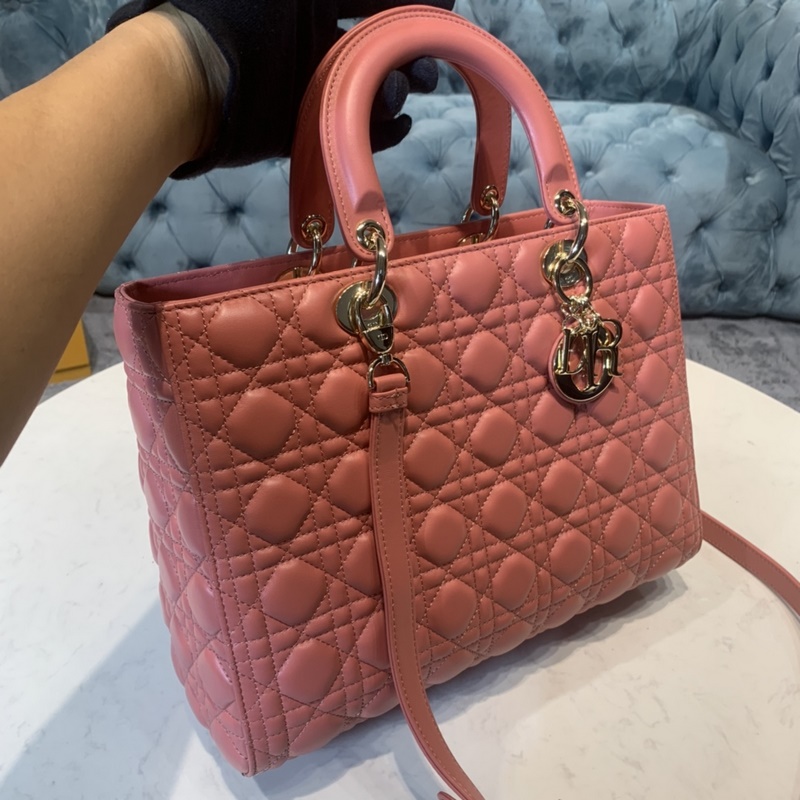5677?코랄 핑크 양가죽 레이디 디올 백 핸들 32cm 7개의 수납공