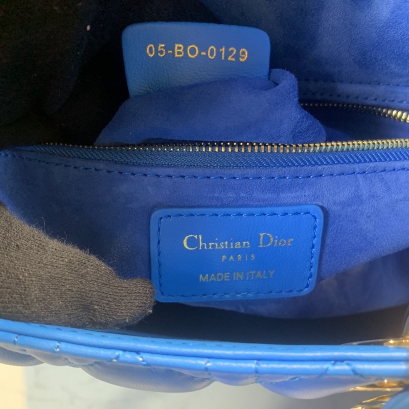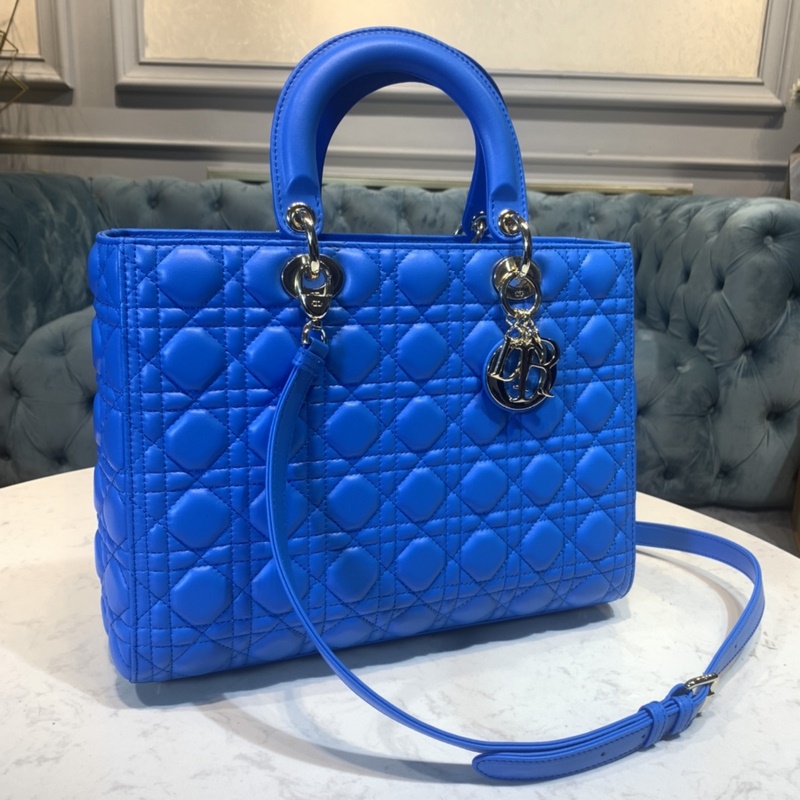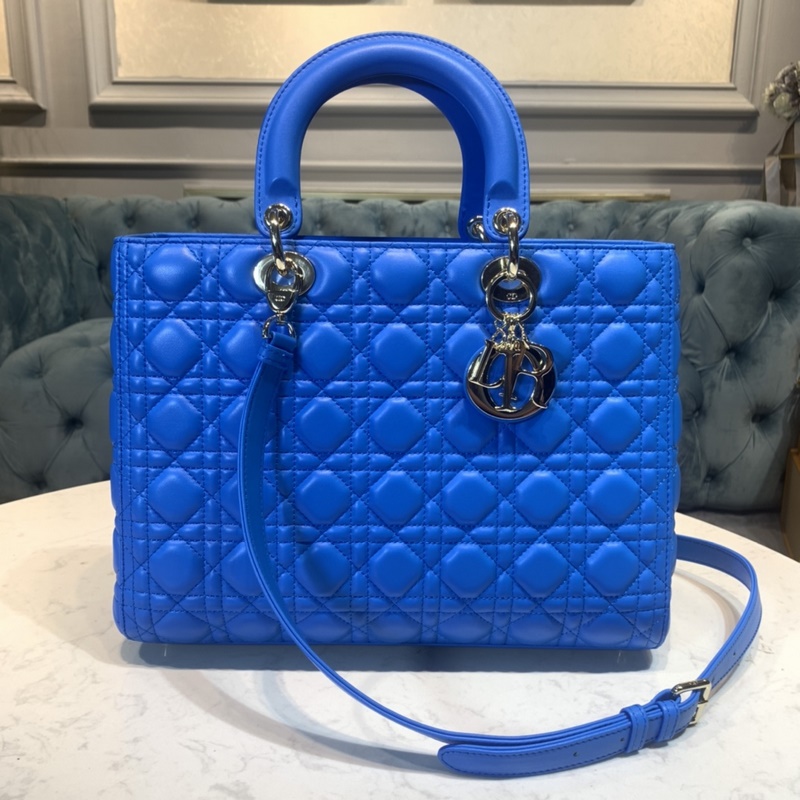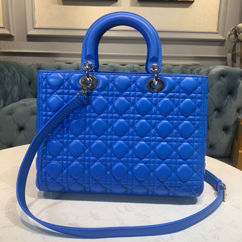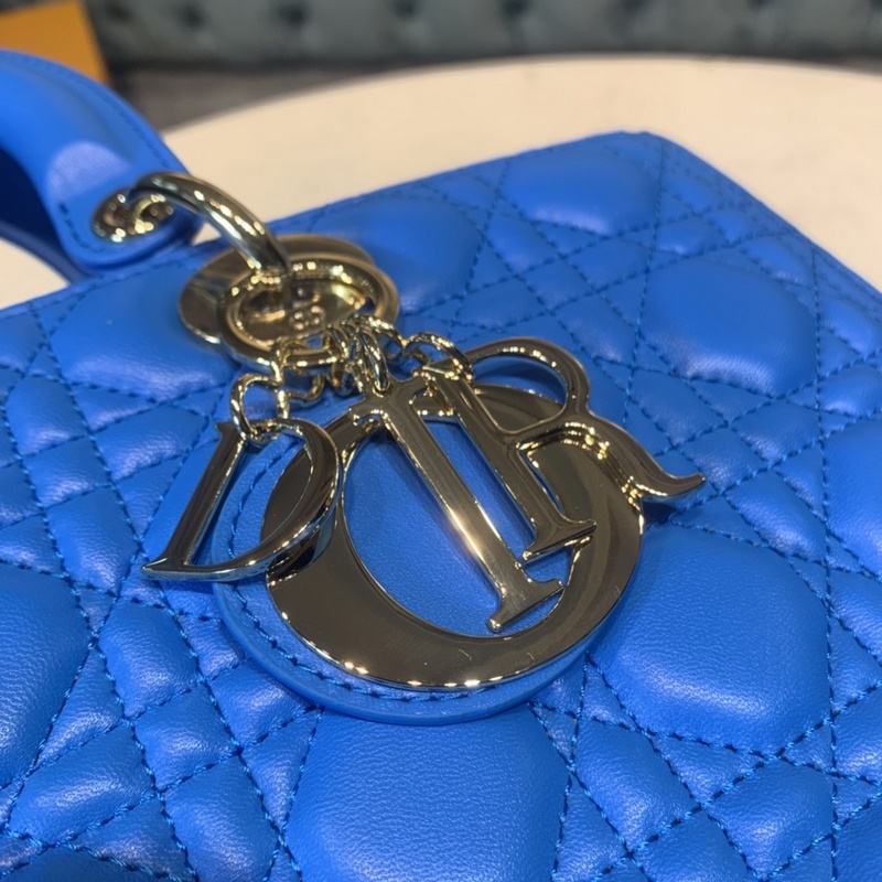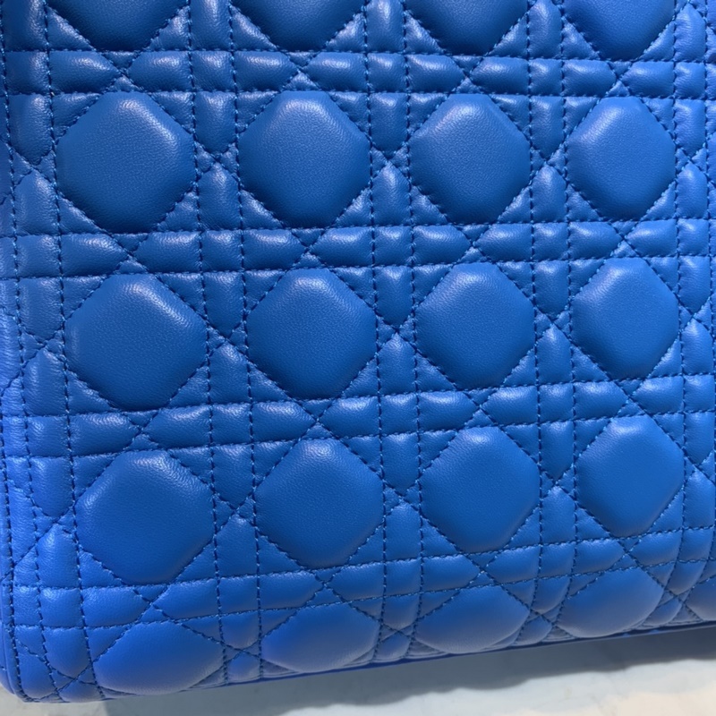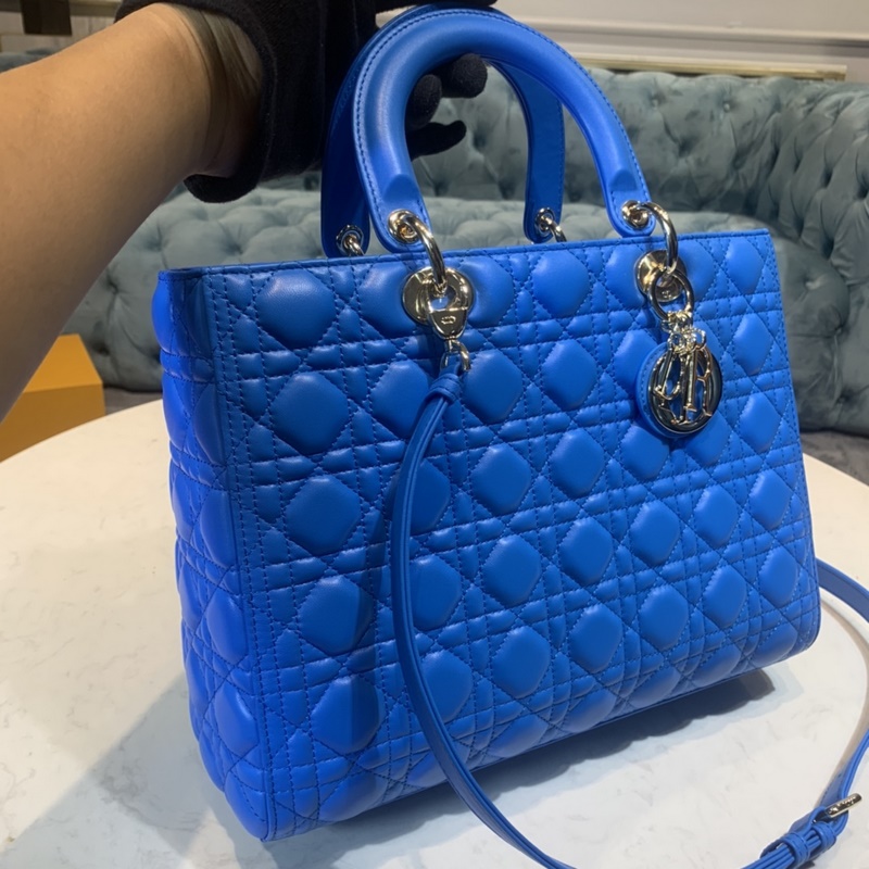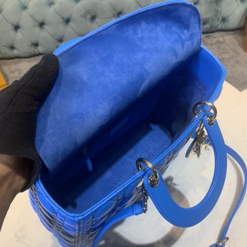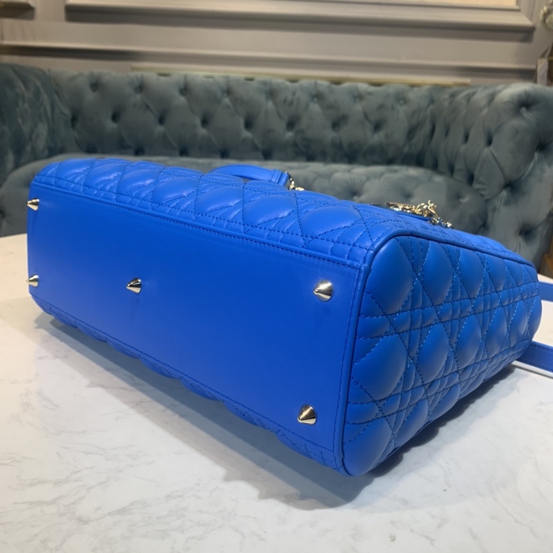 5677?여름 블루 양가죽과 골드 레이디 디올 핸드백 32cm 다이아나