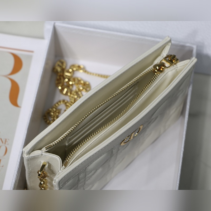 흰색 크기: 19 x 14 x 3cm 이 체인백은 세련된 디자인과 D-sign 클래식 로고가 절묘하게 조화를 이루고 있으며 우아함과 모던한 스타일을 자아냅니다. 부드러운 소가죽으로 만들어졌으며 상징적인 라탄 체크무늬 탑스티치와 앞면의 로고로 세련미를 더했습니다. 탈착 가능한 체인 숄더 스트랩이 함께 제공되며 CD 체인 링크로 장식되어 있습니다. 이 체인백은 손으로 들거나 어깨에 메거나 크로스 바디로 메는 등 다양한 방법으로 휴대할 수 있으며 같은 시리즈의 다른 아이템과 함께 매치할 수 있습니다. 3칸 1개는 지퍼 달린 것 카드 슬롯 6개 탈착식 어깨 스트랩
